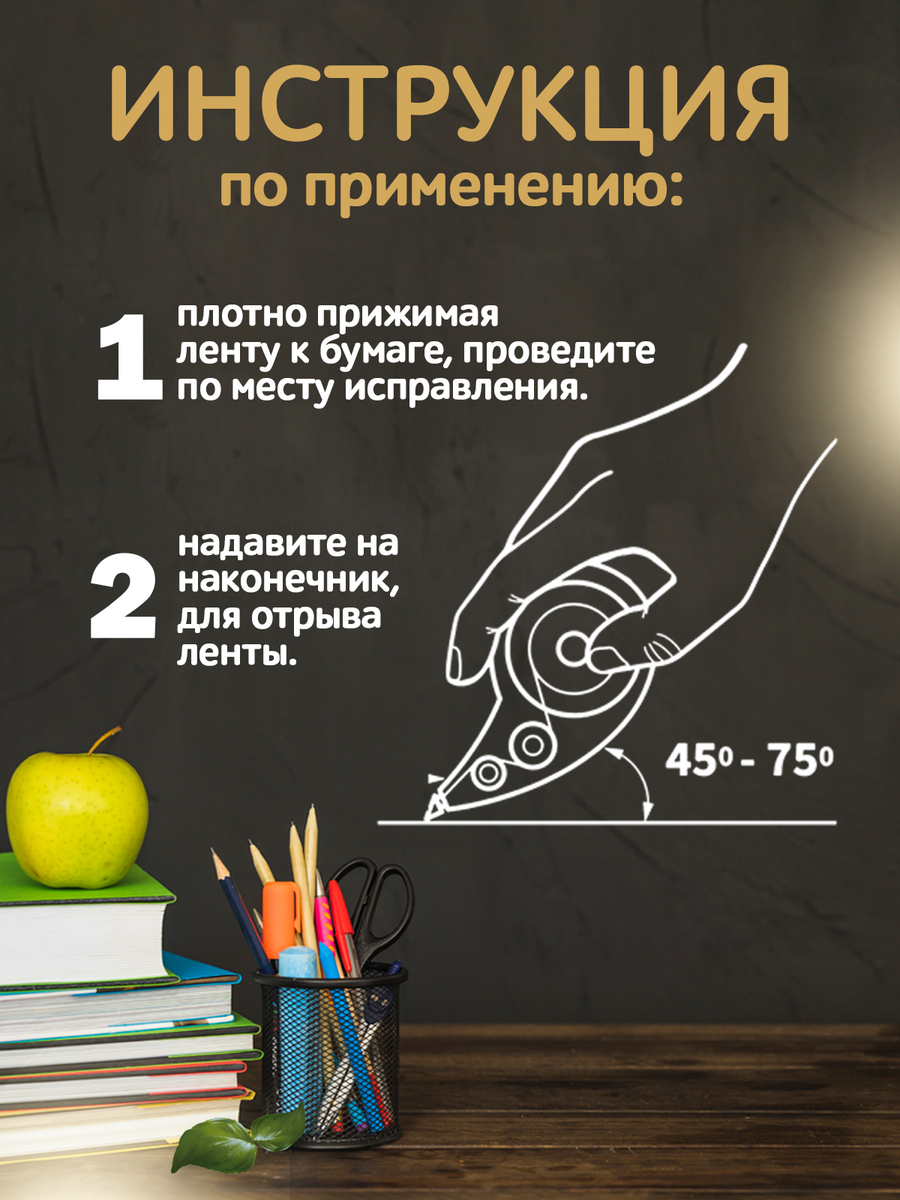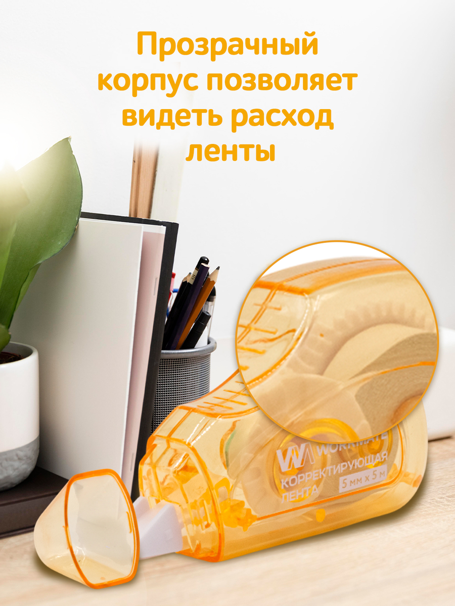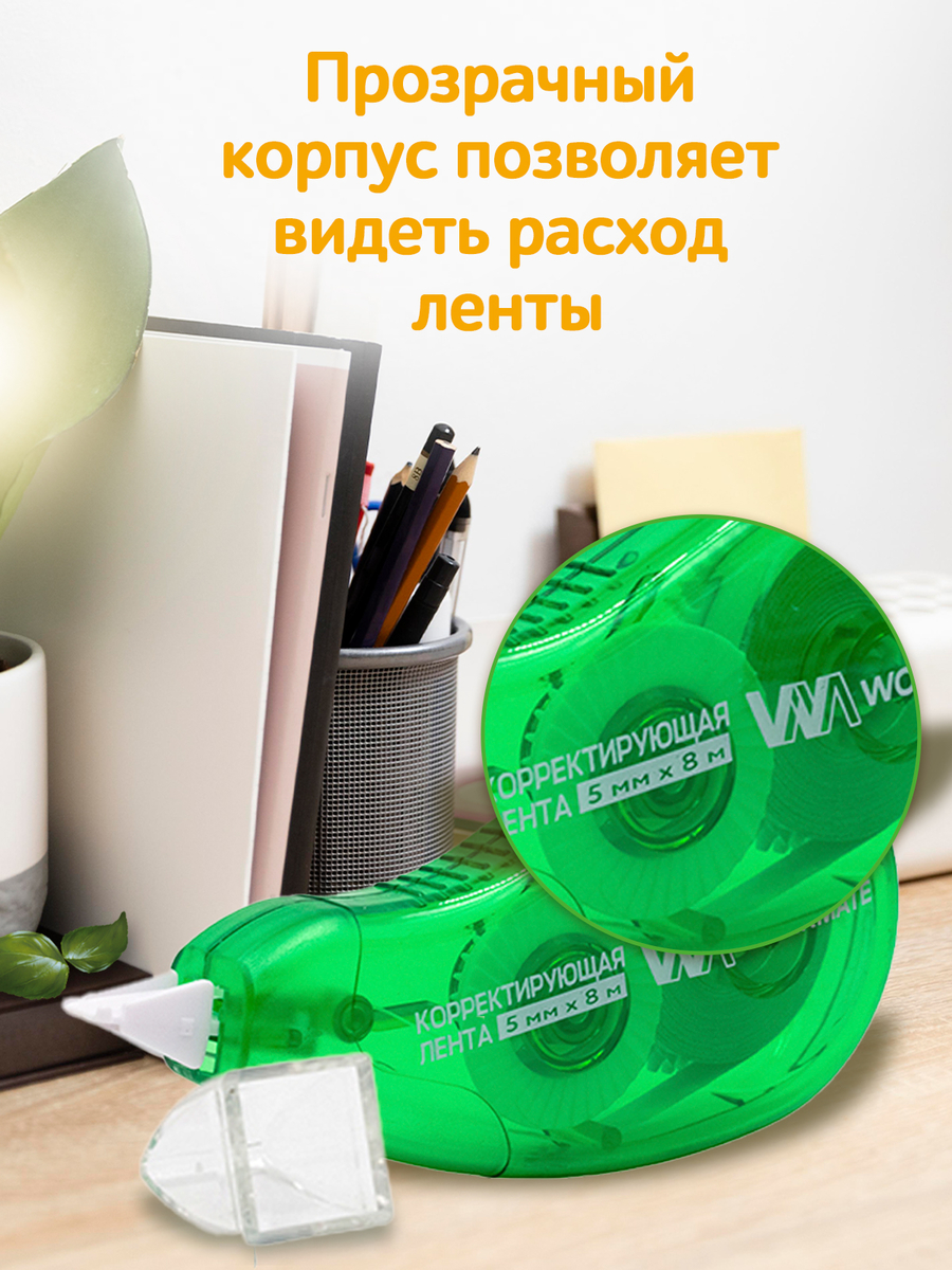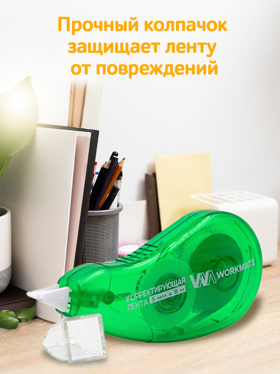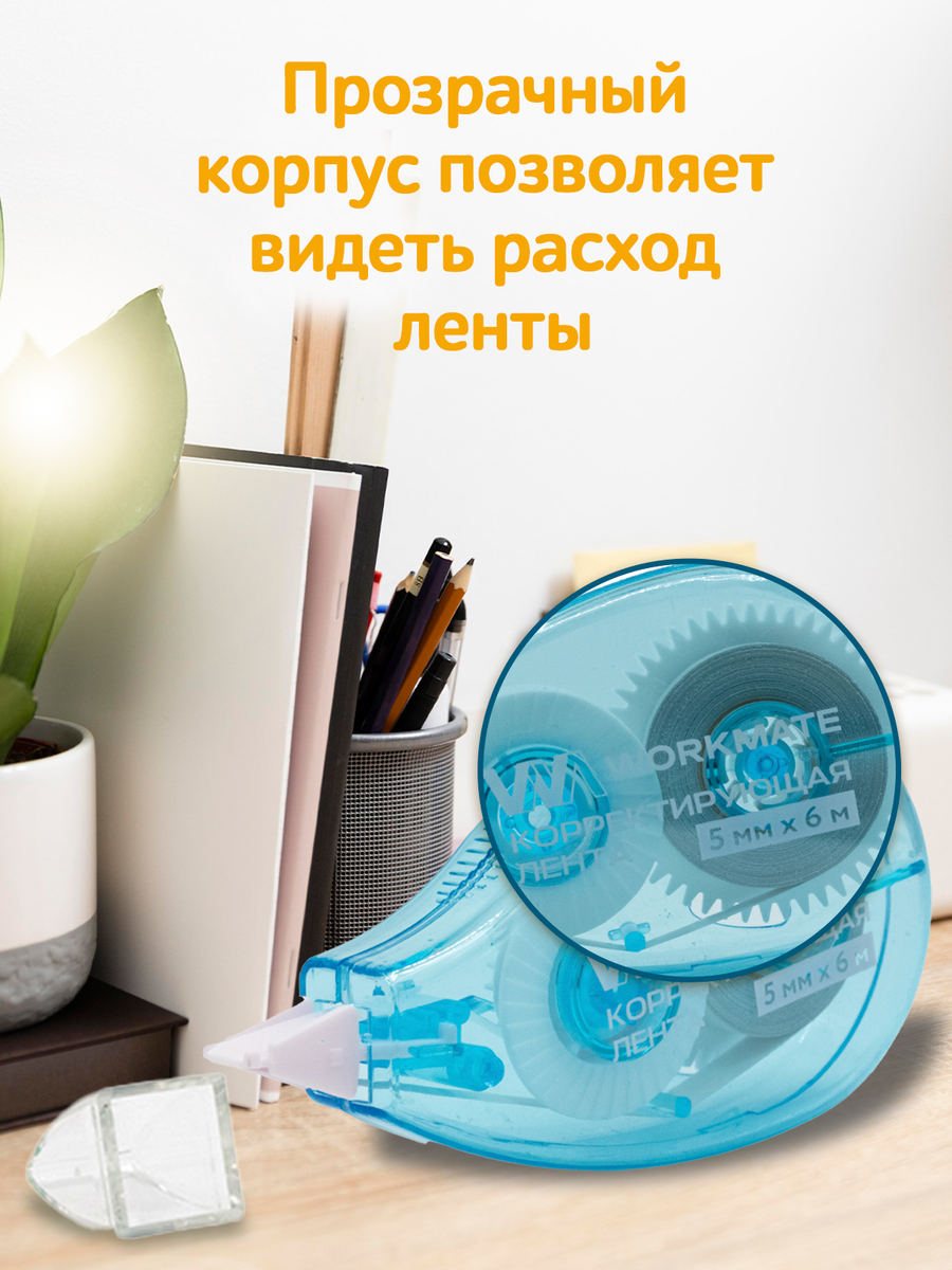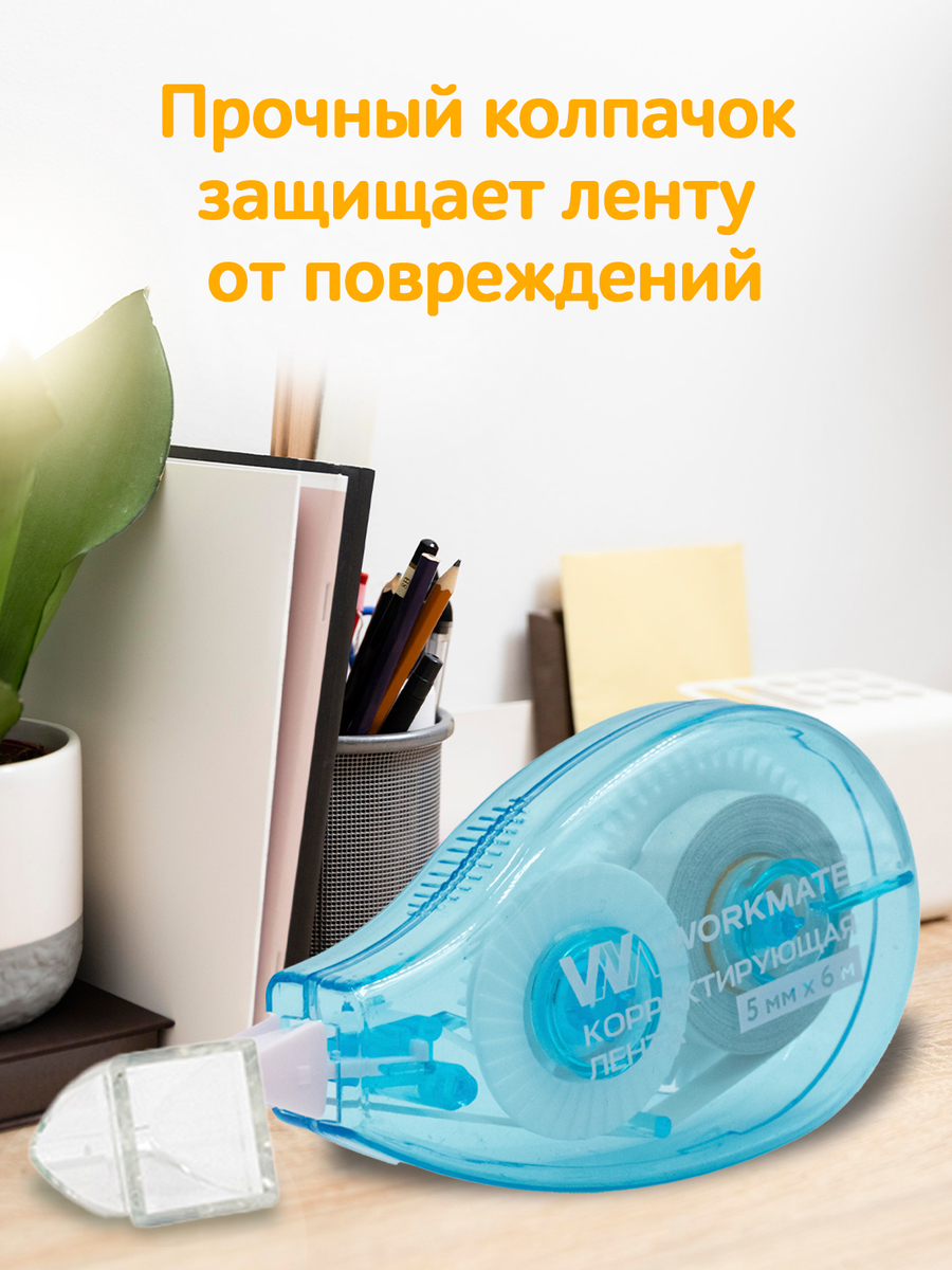 Корректирующая лента для наносится мгновенно, обеспечивая плотное и ровное покрытие с первого касания. Она подходит для любого типа бумаги, позволяя быстро и аккуратно исправлять ошибки. Прочный колпачок надежно защищает ленту, а прозрачный корпус даёт возможность легко контролировать расход. В ассортименте разная длина намотки с шириной полосы 5 мм.