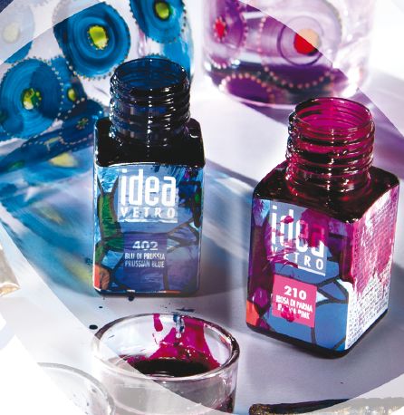 Эта серия красок на основе растворителя, позволяющая украшать стекло и создавать красивые витражные рисунки без запекания. Краски Idea Vetro очень популярны благодаря своим великолепным свойствам: красивые сочные цвета сочетаются с устойчивостью к свету и стойкостью к изменениям температуры. За счёт своего состава хорошо переносят перепады температур, не требуют дополнительного закрепления, сохнут на воздухе.