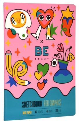 Помимо скетчбуков на гребне вы найдёте скетчбуки на сшивке в формате А5-евро, компактный и лёгкий скетчбук с 40 листами плотностью 120 г/кв. м. Всегда будет с вами, а стильные дизайны на обложках с эффектом soft touch вдохновят на творческие идеи!