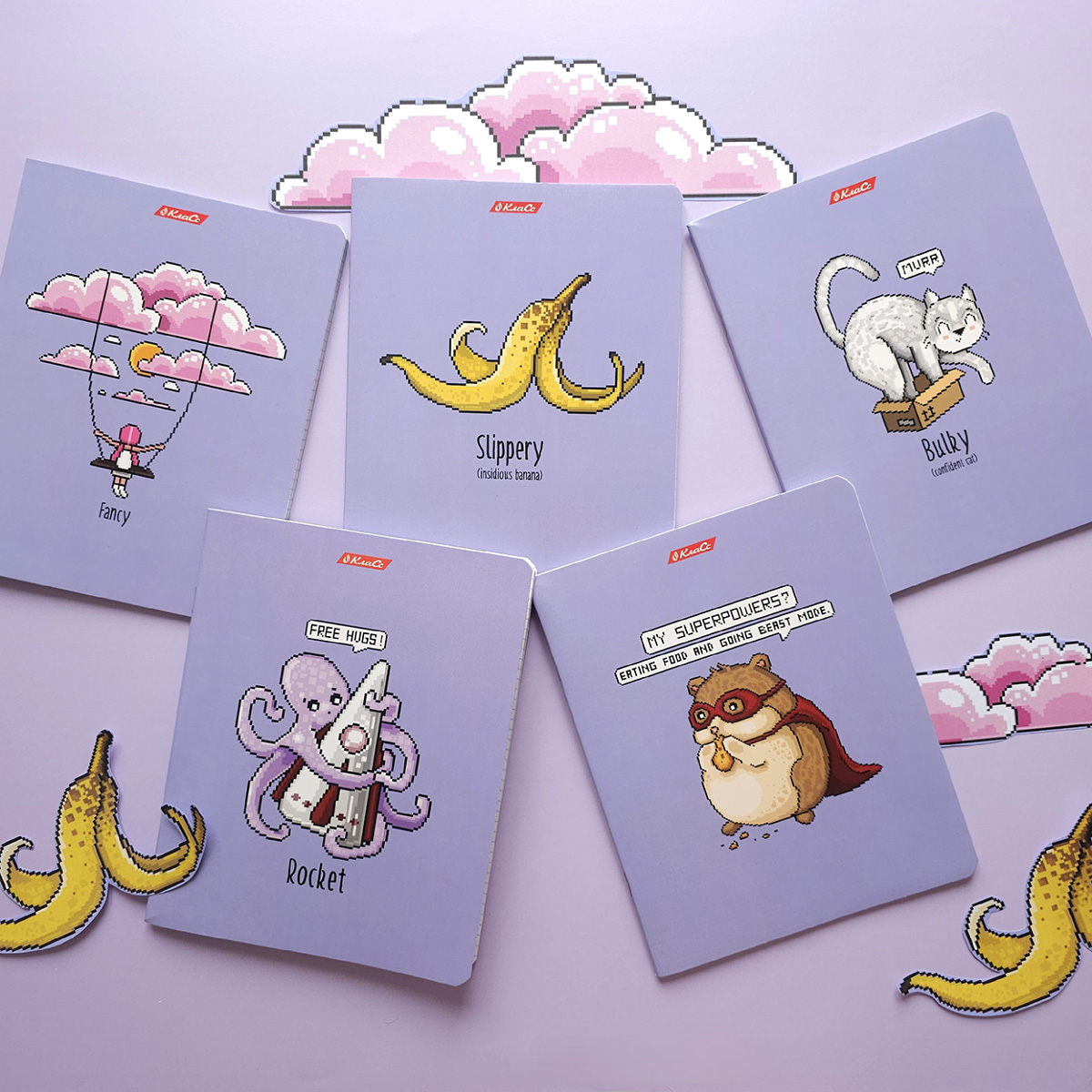 Внимание! Обложки тетрадей «Микс пикс» заряжены магией пиксельного арта! Того самого, который подарил миру легендарный мем «нян-кэт».
