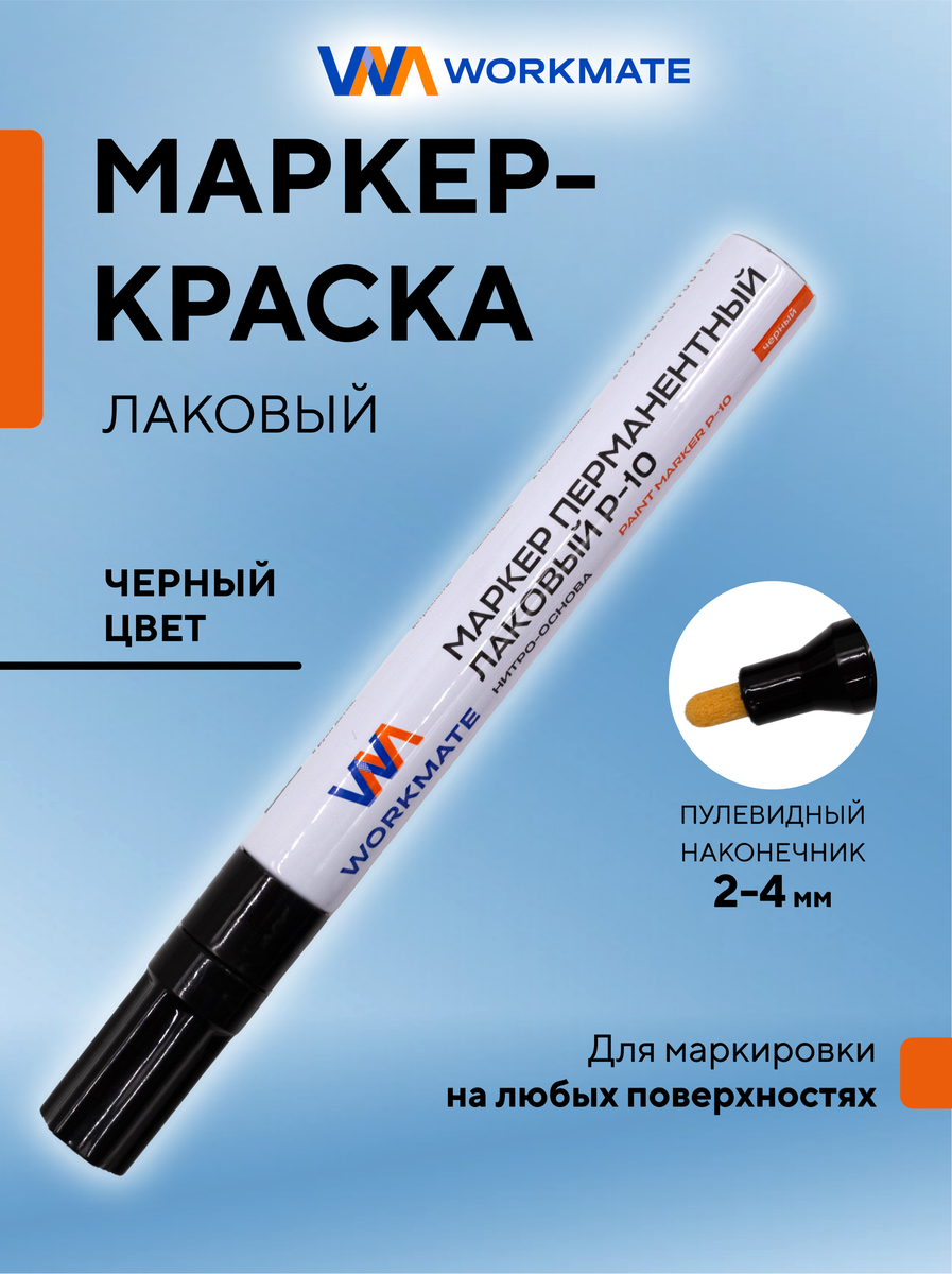 Когда обычные маркеры бессильны, наступает время профессионального решения — лакового перманентного маркера Workmate P-10. Он широко используется в промышленности из-за лаковых чернил, которые создают прочное, несмываемое покрытие, выдерживающее химическое и механическое воздействие, резкие перепады температур, повышенную влажность и солнечный свет.
