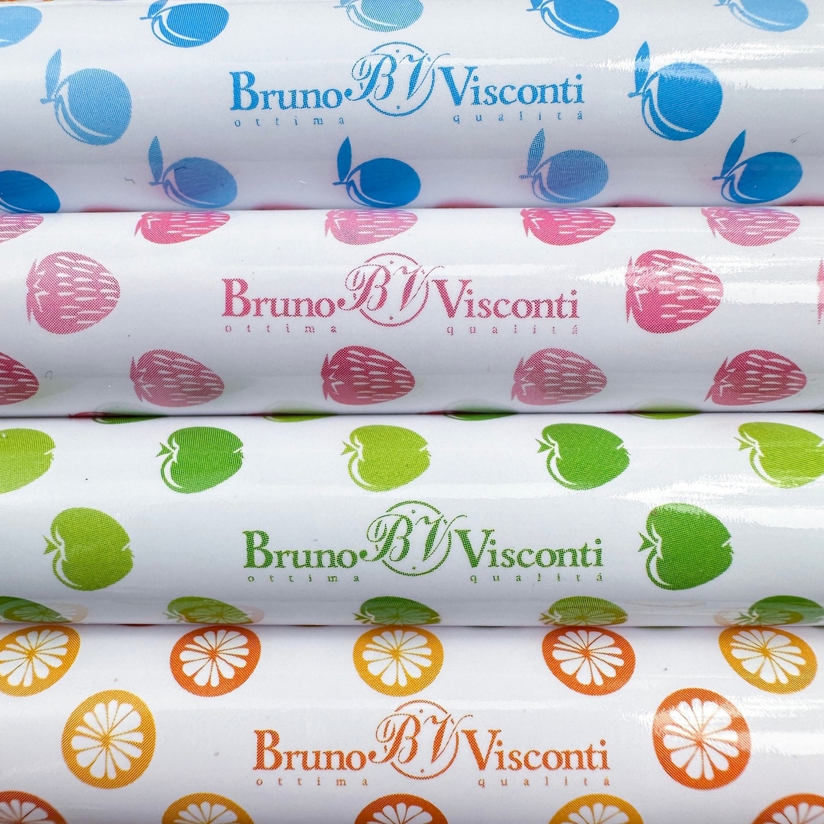 Выполнены в четырёх разных оттенках — голубых, розовых, оранжевых и зелёных. Обёртки ластиков украшены фруктовым орнаментом из яблок, черники, клубники и апельсиновых половинок. Ластики можно добавить в комплект к другим товарам из этой коллекции.