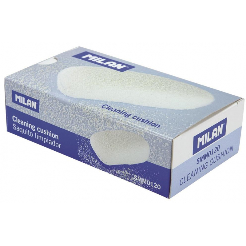 Также в продаже эластичная хлопковая подушка Milan с каучуковой крошкой. Она предназначена для очистки и восстановления документов и произведений искусства. Изделие содержит 120 г мелкой крошки ластика из синтетического каучука. Размер — 115 x 65 x 35 мм.
