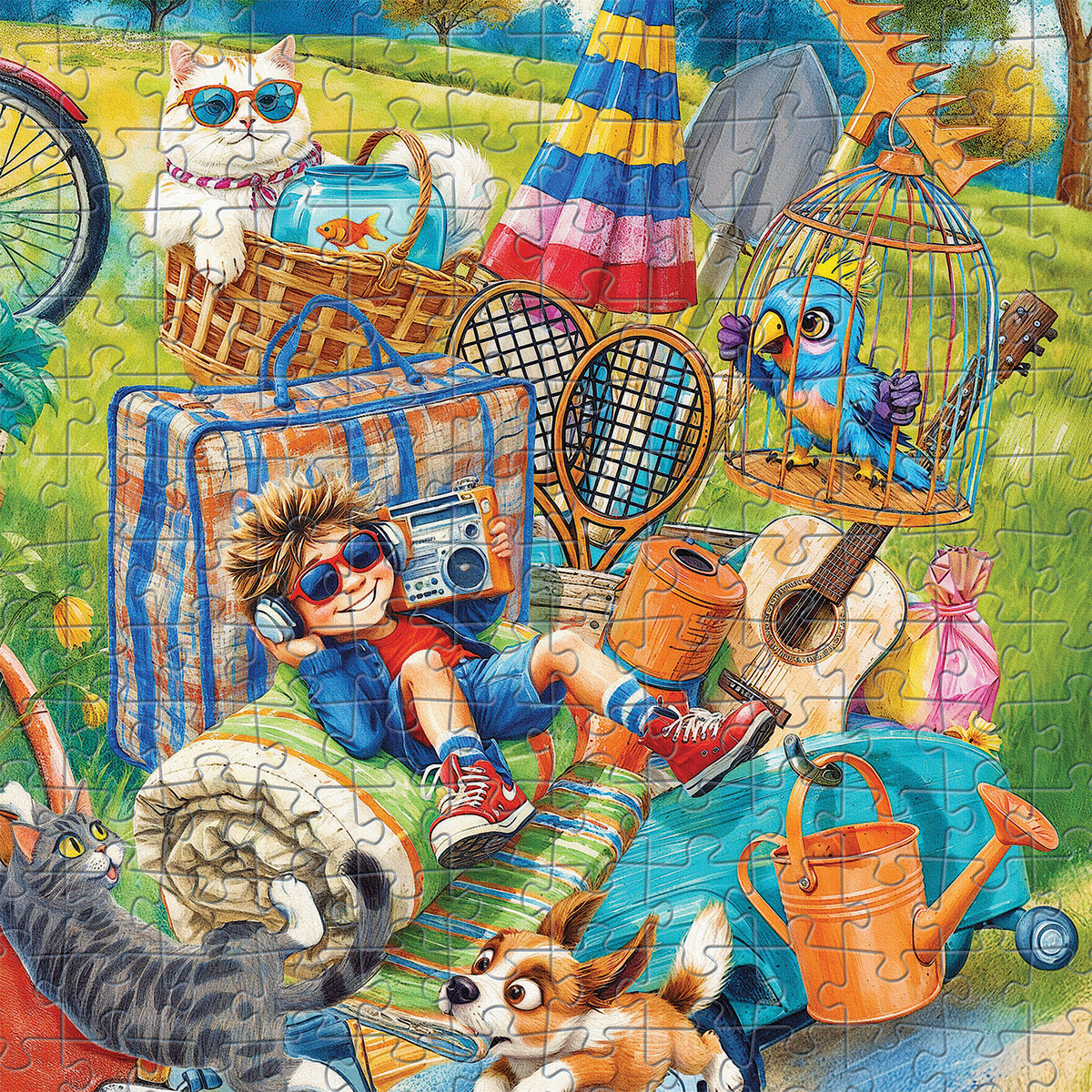 Погода за окном намекает: пора утепляться и запасаться чаем. Но кто сказал, что весёлое лето закончилось? Пазл «Ура! На дачу!» упрямо хранит солнечное настроение — и готов собраться для вас по кусочкам!