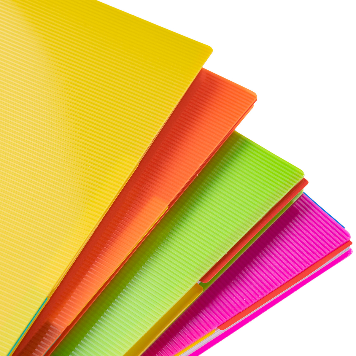 Новые тетради LINE NEON А4-формата 96 листов на гребне в клетку с пластиковой обложкой и четырьмя цветными разделителями и линейкой отлично подойдут для использования в старших классах, вузах, дома или офисе.