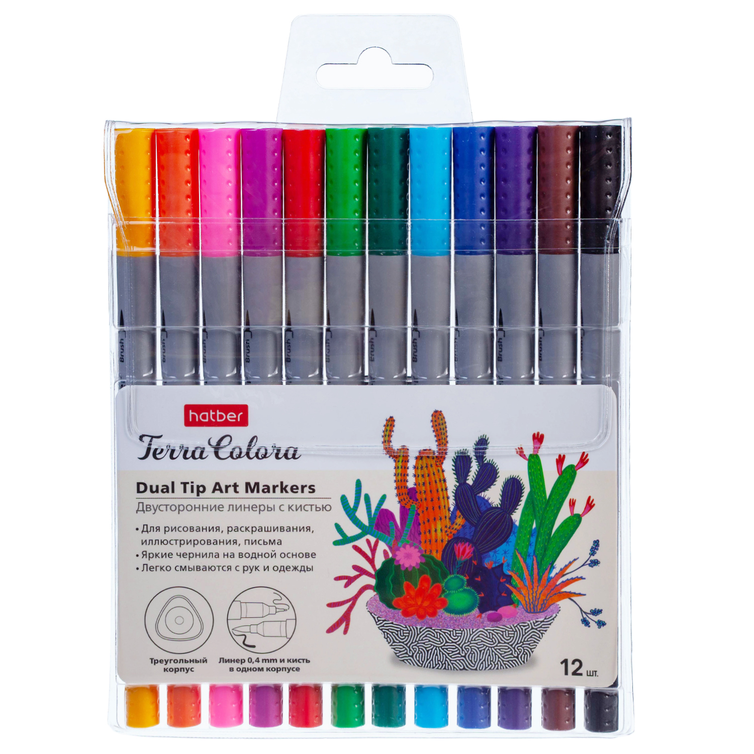 Но сегодняшняя новость таит в себе нечто большее\6 мы немного видоизменили линеры, у них появился второй пишущий узел. Это нововведение переводит привычные вроде бы художественные пишущие принадлежности в новую весовую категорию. Теперь это не просто линеры, а арт-маркеры. И они имеют тонкий наконечник 0,4 мм, а также кисть 1–2 мм. Двухсторонние линеры с кистью идеально подходят для рисунков, раскрасок, эскизов, иллюстраций, ведения журналов, оформления дневников, записных книжек, календарей. Представлены в наборах из 12 и 24 цветов.