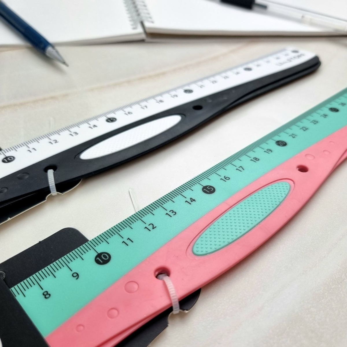 Антискользящая вставка: линейка не будет скользить по бумаге, позволяя тебе проводить идеально ровные линии.