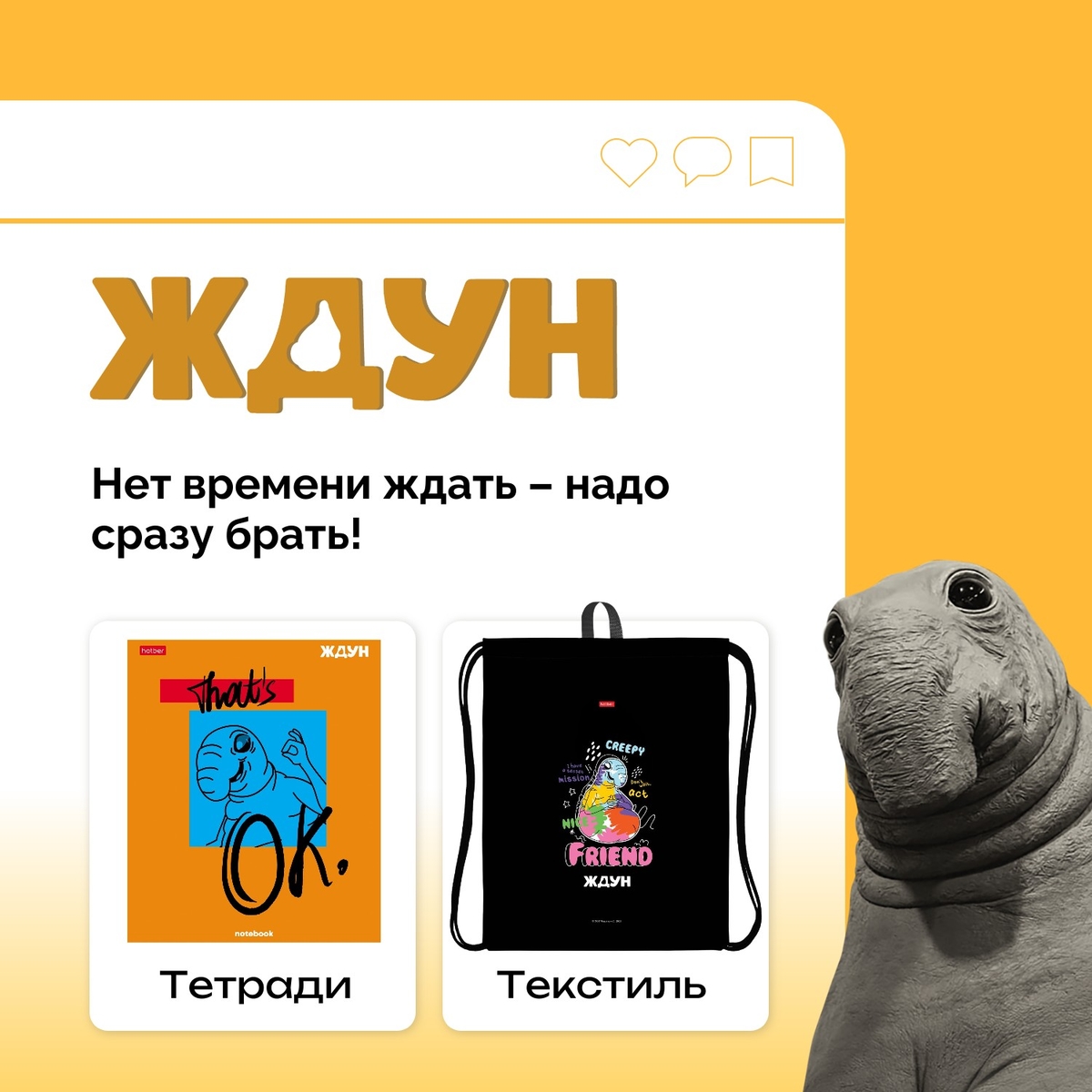 С 20 марта на российские экраны и вовсе выходит целый полнометражный фильм > «Ждун»! Между прочим, с высоким рейтингом ожидания в 83 % на «Кинопоиске». Представляем коллекции товаров с главным героем!