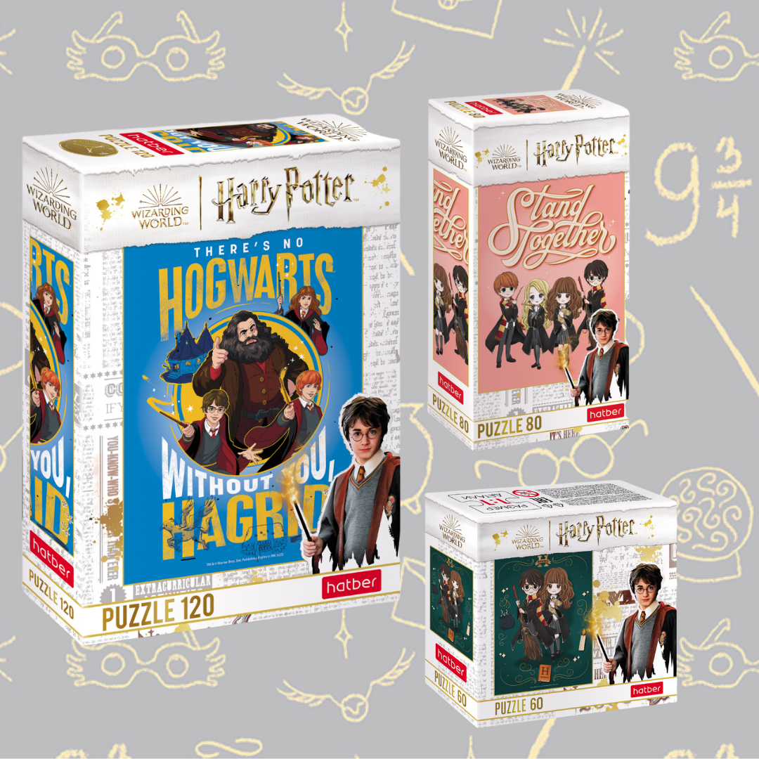 Итак, встречайте: пазлы из популярной коллекции «Гарри Поттер»! Мы стараемся сделать новинки во всех группах, чтобы фанаты этого фильма от детей до взрослых могли собрать полюбившиеся картины. Сегодня целых три новинки с любимыми героями. И для всех фанатов чародеев из Хогвартса мы сделали пазлы в новом стиле с мультяшными образами Гарри и Гермионы на 60 элементов, а также на 80 элементов, где к ребятам присоединились их друзья. А если вам по душе харизматичный Хагрид, то для вас точно приглянётся новый пазл на 120 деталей.