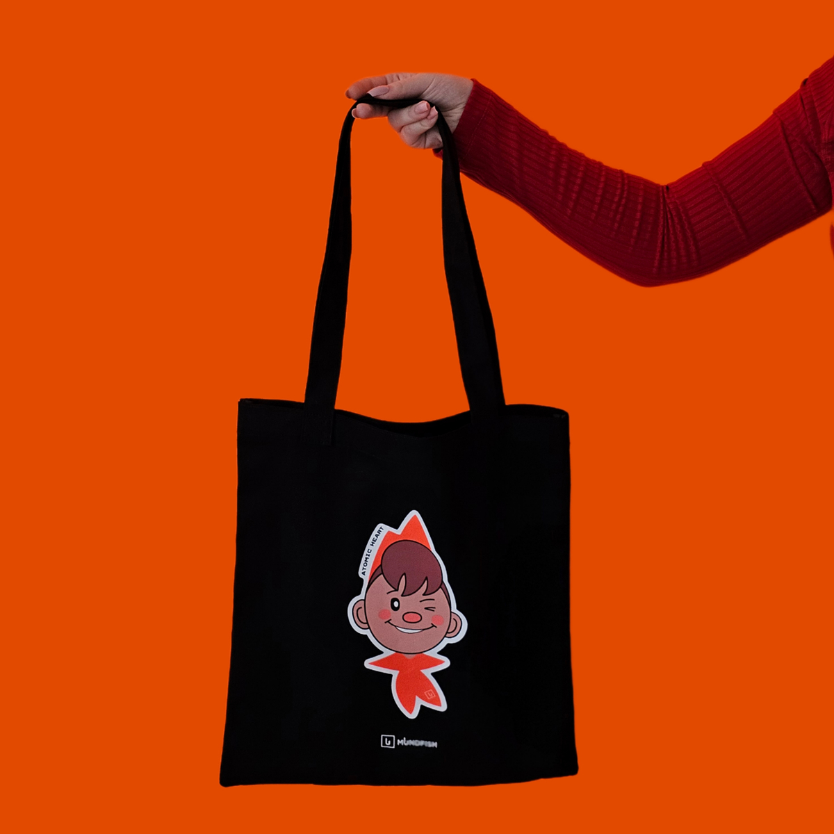 2. Игра Atomic Heart — по хайповой компьютерной игре представлен стильный шопер. Бойкий герой в красной пилотке из мультиков, всплывающих при прокачке главного героя. Яркий символ игры!