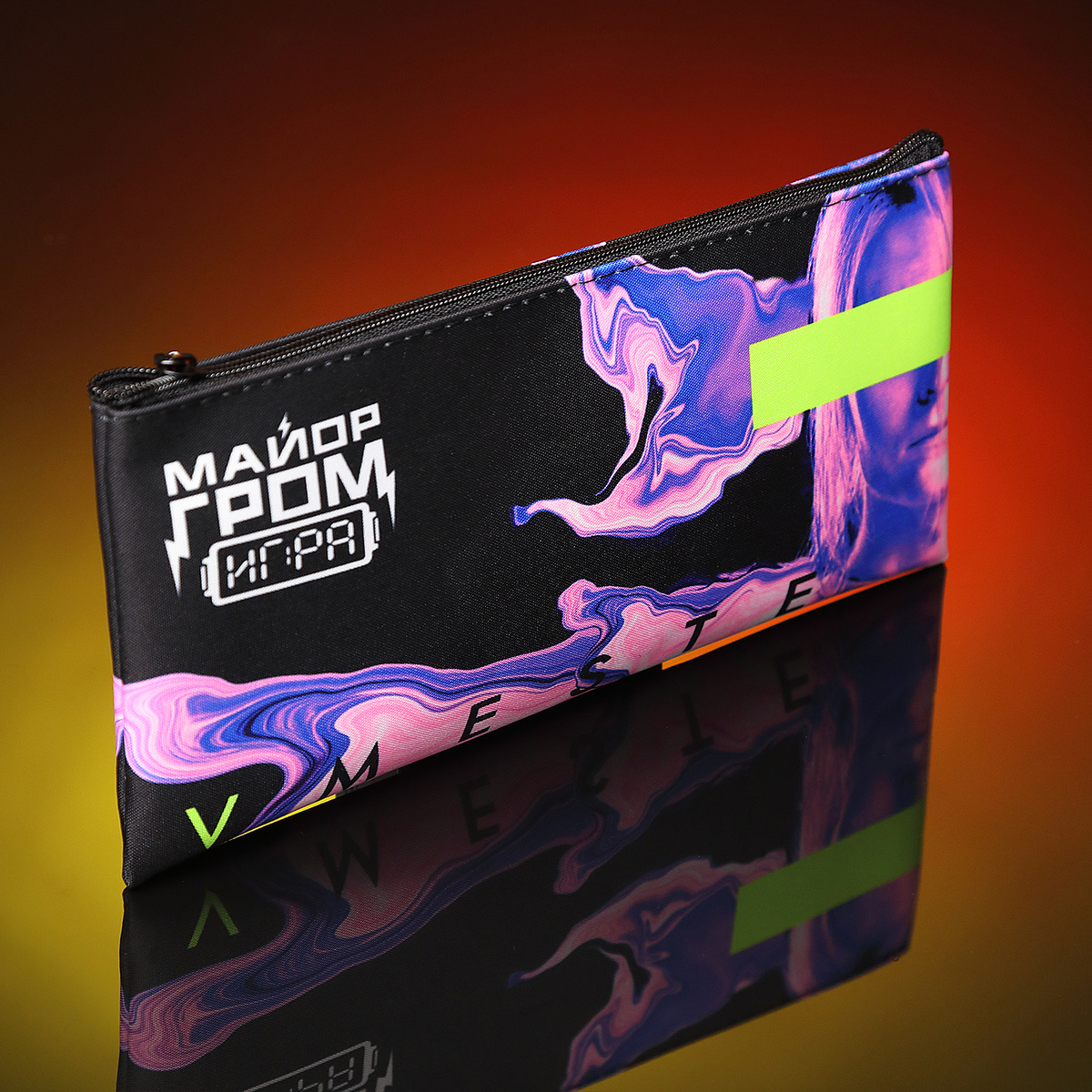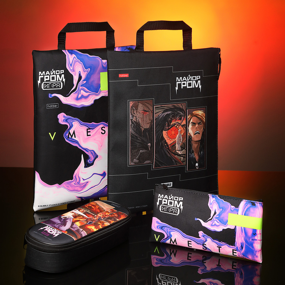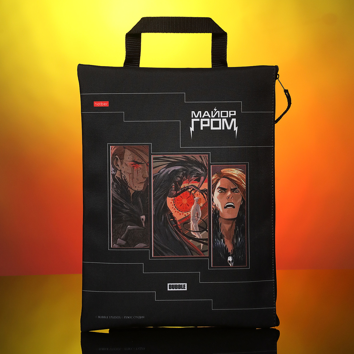 Сумка-папка с ручкой. Вертикальная вытянутая папка формата А4 с удобной молнией на боку дополнена стильным дизайном с логотипом истории про Майора Грома, а также триптихом, посвященным непростой истории одного из персонажей-злодеев. Харизматична и притягательно драматична!