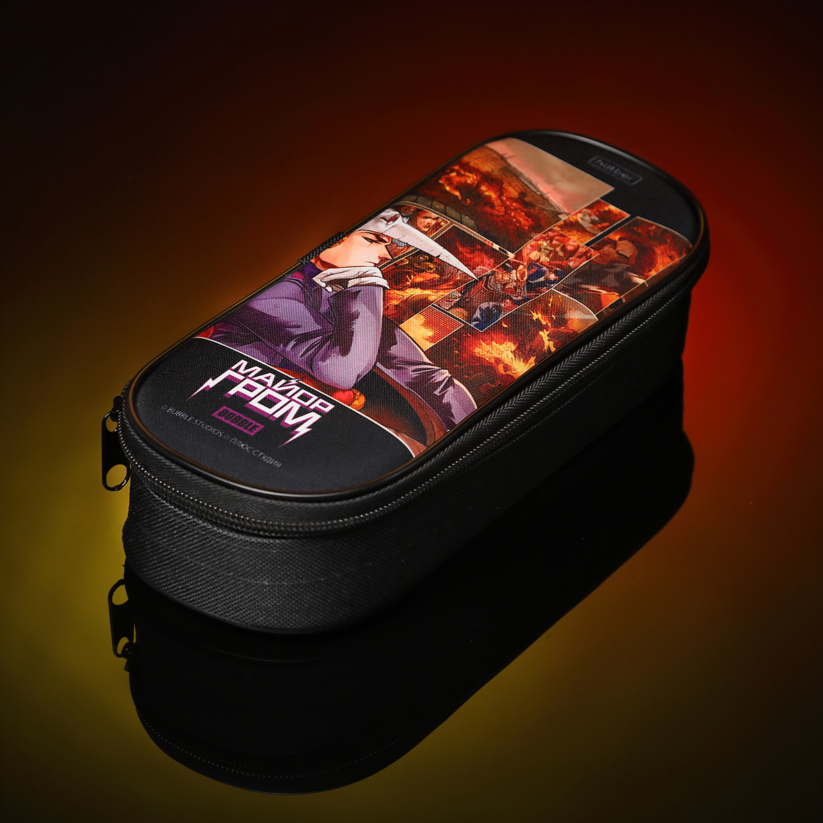 Каркасный пенал увеличенного размера на молнии. На лицевой стороне — арт с харизматичным комиксовым антагонистом истории. Удобен и стилен!