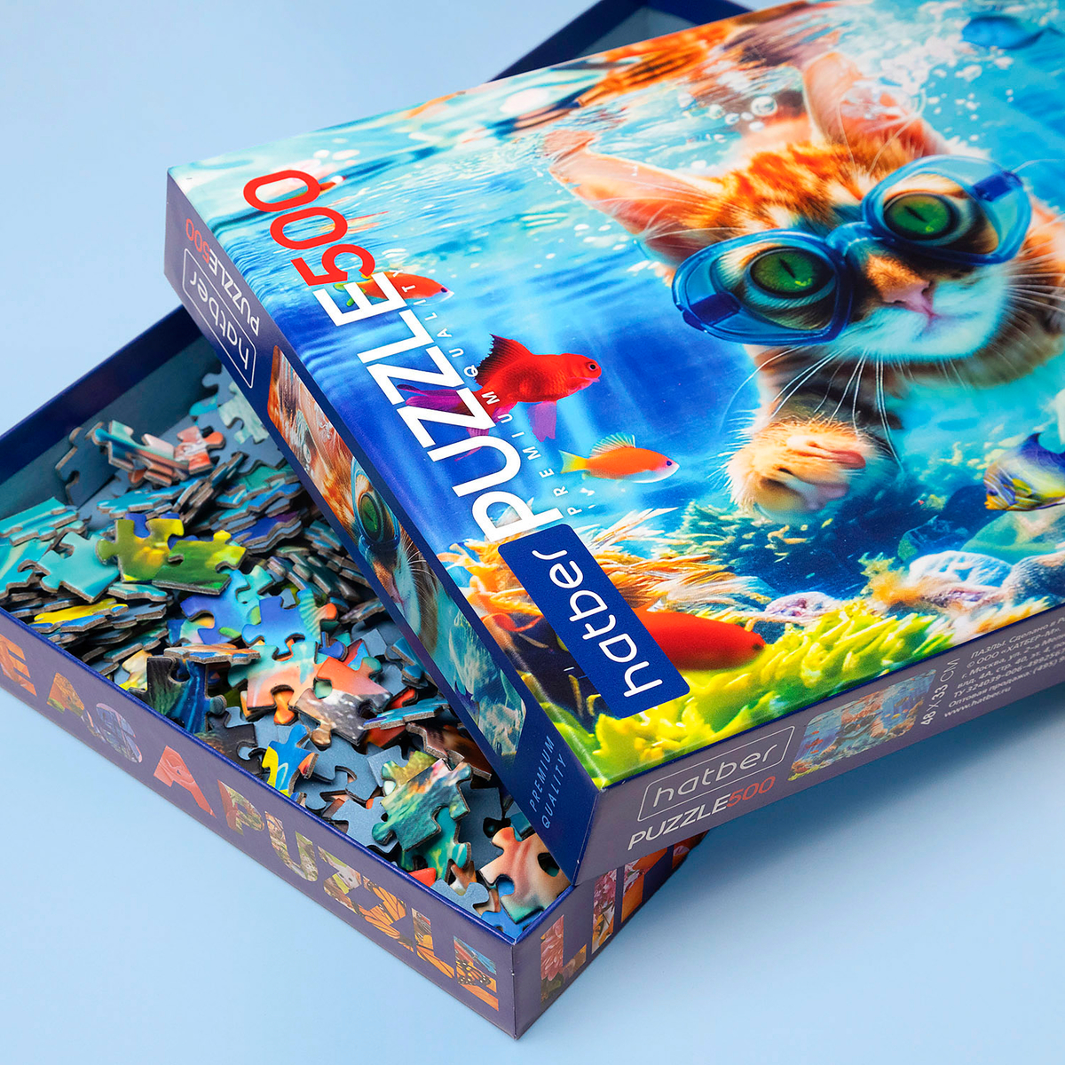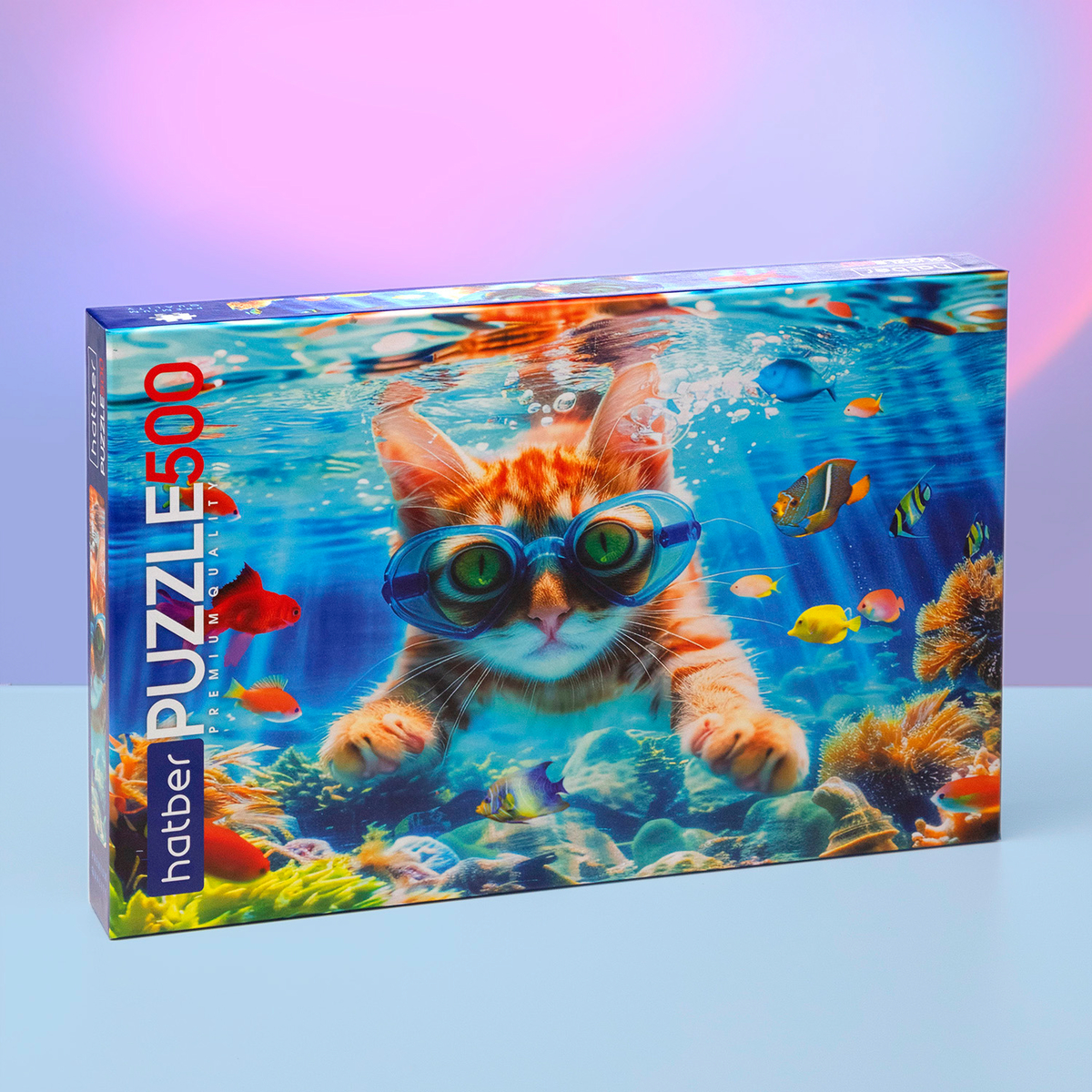«Котик на релаксе» на 500 элементов порадует всех поклонников морской тематики и пушистых друзей! На изображении вы увидите очаровательного полосатого котика в стильных подводных очках, который плывет по кристально чистой воде. Его уверенный взгляд обращён прямо на вас, создавая ощущение, что он приглашает вас в мир подводных приключений. Вокруг котика плещутся разноцветные рыбки, а яркие кораллы добавляют композиции живости и красоты. Этот пазл — отличный способ отвлечься от будничной суеты и погрузиться в мир подводного волшебства!