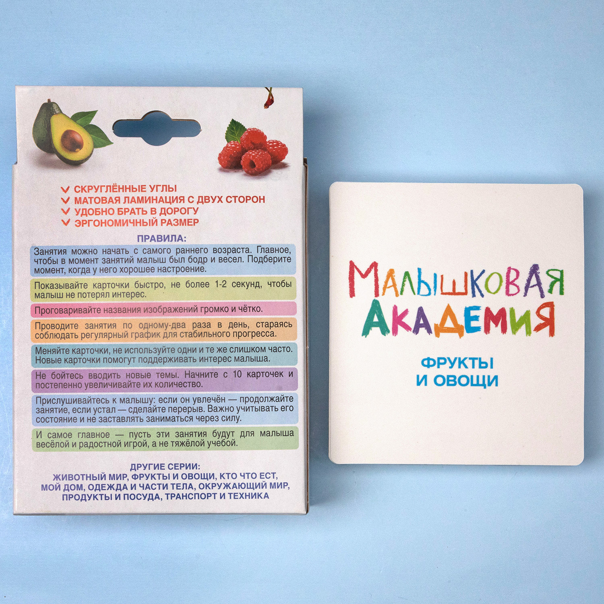 В серии «Малышковая академия» доступны восемь тематических наборов: «Животный мир», «Овощи и фрукты», «Кто что ест», «Мой дом» «Одежда и части тела», «Окружающий мир», «Продукты и посуда» и «Транспорт и техника».