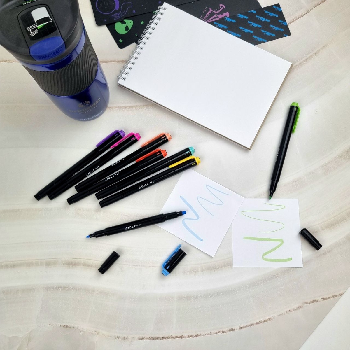 Набор маркеров STUDIO разработаны специально для скетчинга. Восемь разноцветных маркеров с двухсторонней основой отлично подходят для рисования в самых неожиданных условиях, ведь иногда муза приходит, когда её совсем не ждёшь, и тут главное успеть запечатлеть всё на бумаге. А в ПВХ-чехле маркеры удобно брать с собой.