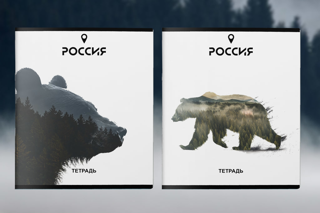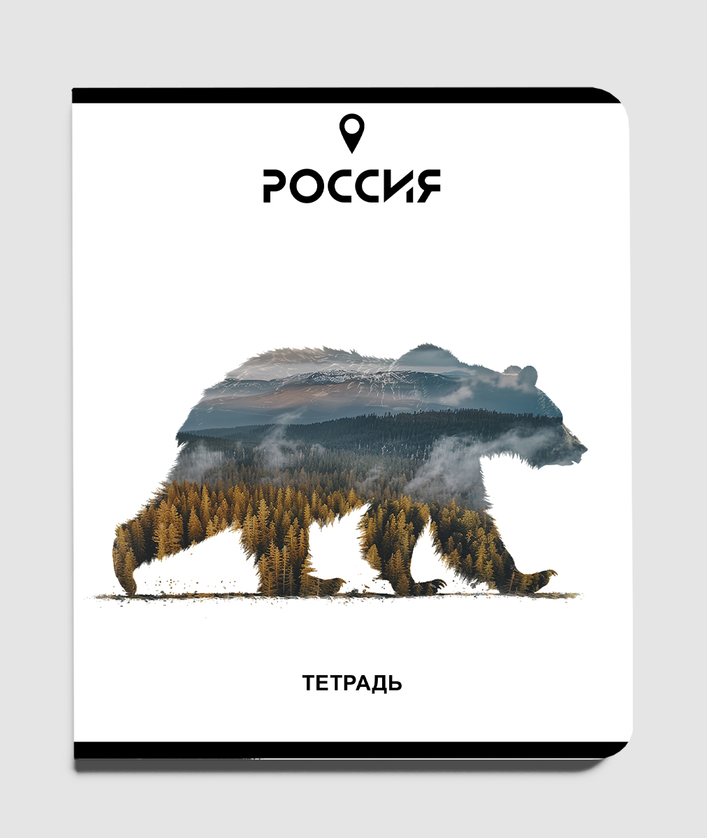 На обложках тетрадей представлена эффектная двойная экспозиция, где в силуэты медведей гармонично вписаны живописные пейзажи России, создавая впечатляющий визуальный эффект и подчёркивая богатство нашей природы. Обложка тетради выполнена из высококачественного картона плотностью 190 г/кв. м, что обеспечивает долгий срок службы.