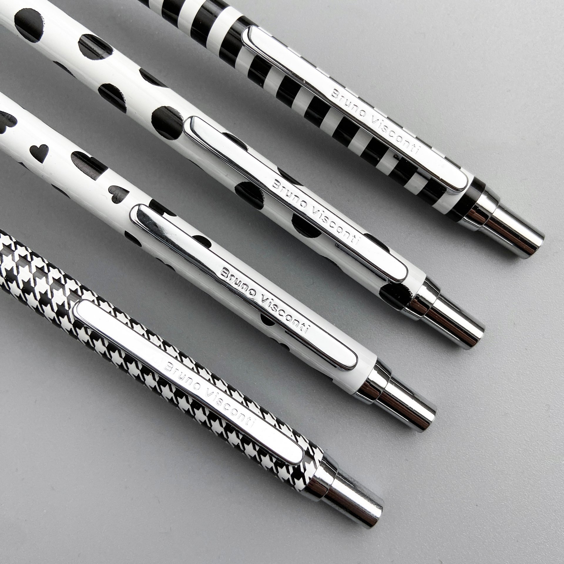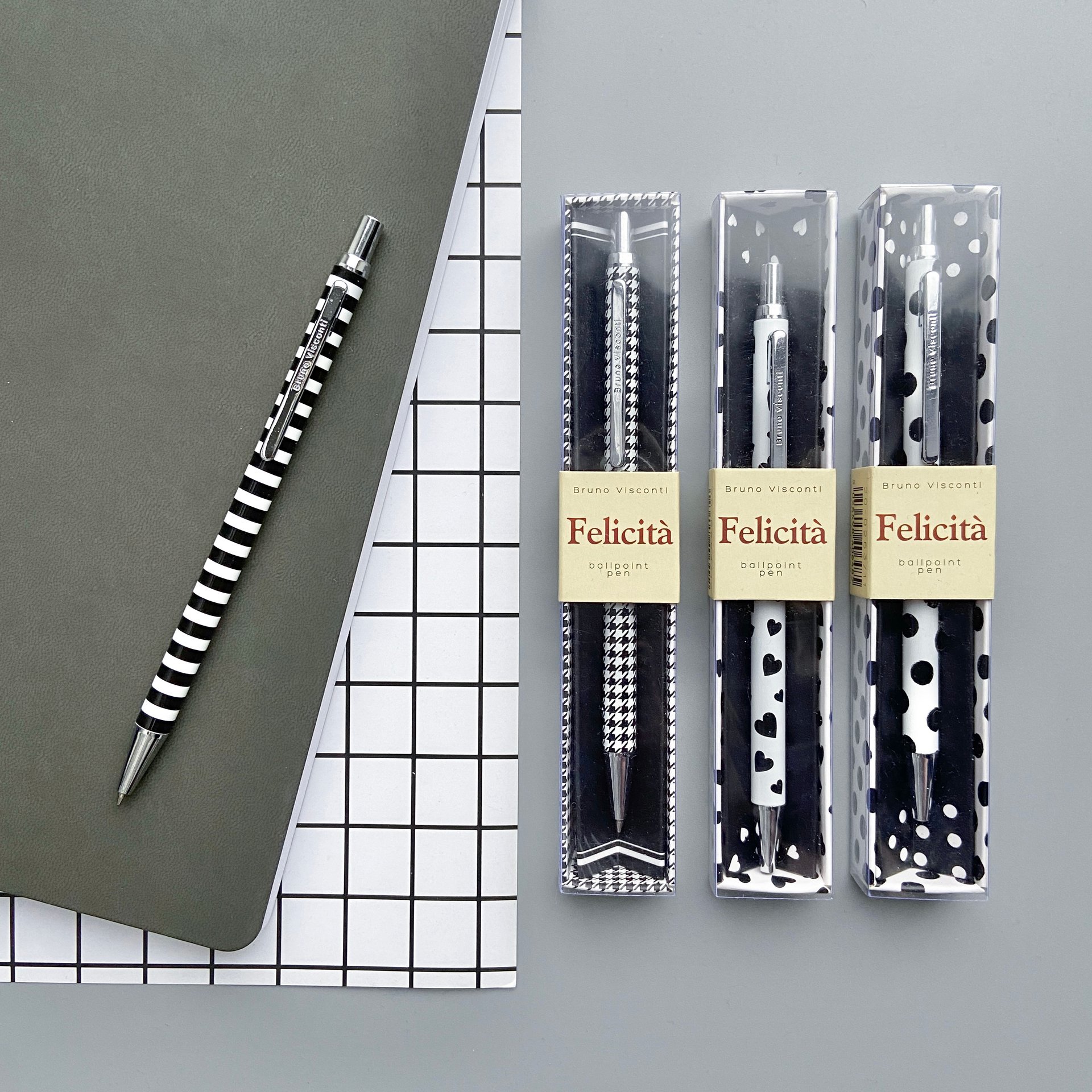 Маленькая автоматическая металлическая ручка Bruno Visconti серии Felicita с ультрамодными принтами порадует любителей всего изящного и утончённого. Благодаря яркой упаковке-пеналу её можно легко хранить, транспортировать и презентовать. Прочный металлический корпус с нажимным механизмом на конце ручки обеспечивают удобство в эксплуатации и долгий срок службы. Синие пигментные чернила DOKUMENTAL(Германия) и пишущий узел Premec (Швейцария) обеспечивают качественное и мягкое письмо.