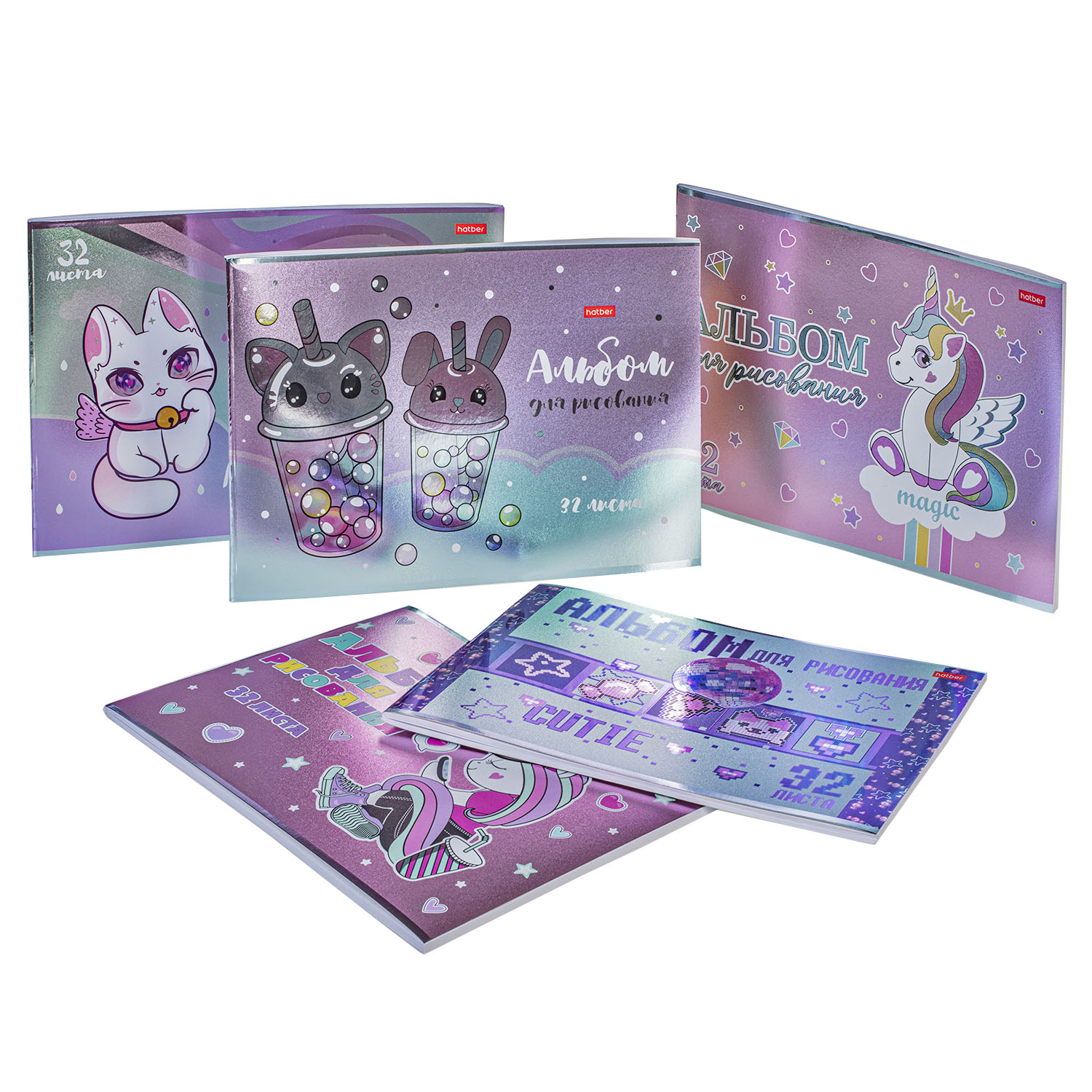 Сверкают, блестят и играют на свету — всё это о новых альбомах от Hatber! Мерцающий блеск металлизированных обложек буквально завораживает, приковывая к себе взгляды. Необычайные альбомы создают особое настроение, погружая вас в визуальное волшебство.