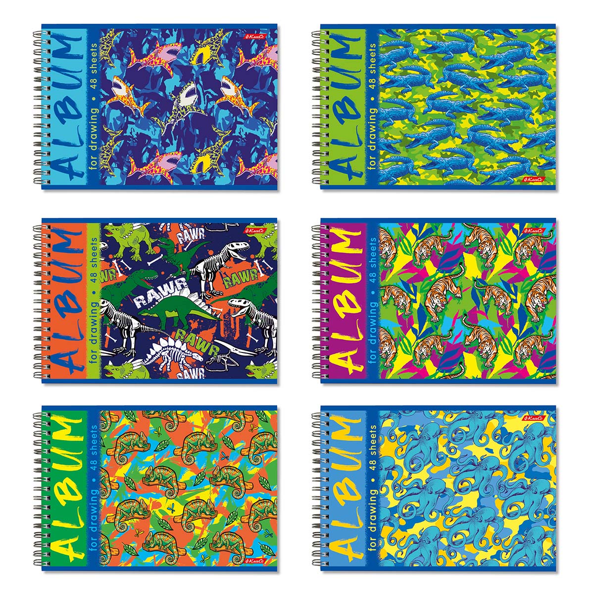 Каждая обложка сложилась в пёстрый паттерн в стиле поп-арт. Контрастные, сочные краски альбомов на гребне вдохновят художников к таким же ярким рисункам. Ведь это крокодилов бояться можно, а ярких красок — ни в коем случае!