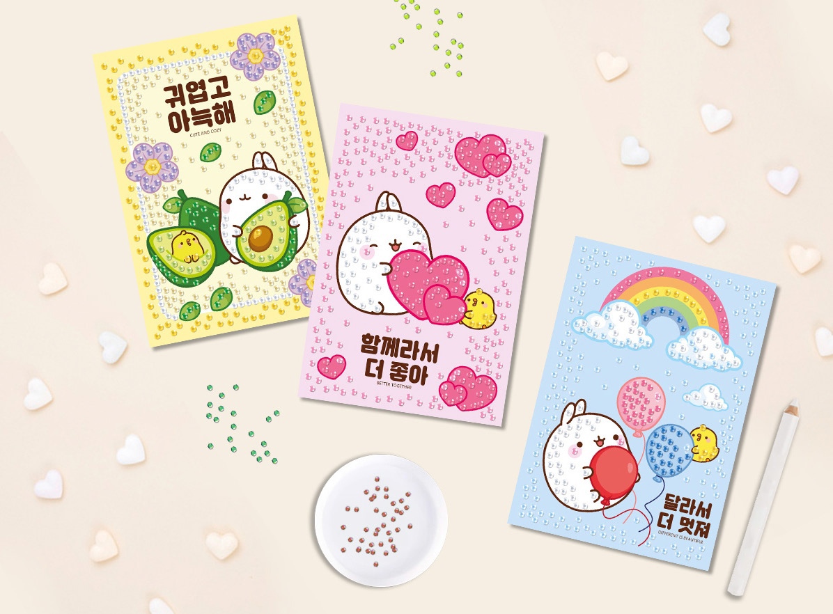 Соберите алмазные узоры по номеру и цвету и подарите в качестве оригинальной открытки или набора для творчества. Сделать такой яркий и необычный комплимент с милым кроликом Molang сможет не только взрослый, но и ребёнок. Блестящий результат поразит всех!