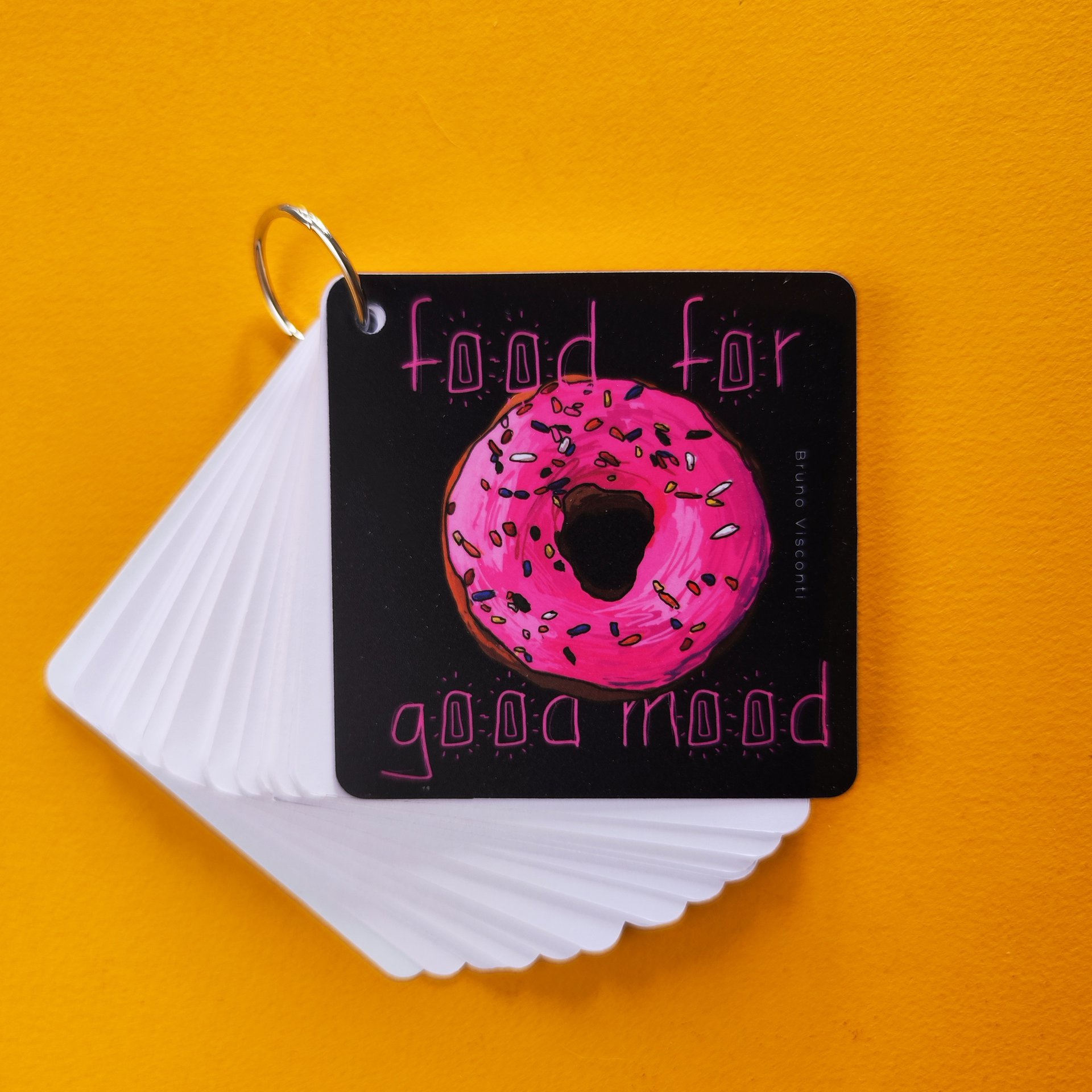 Мини-блокнот Smart journal на колечке с листами из плотной белой бумаги (80 г/кв. м) и пластиковой обложкой. Кольцо-брелок открывается при необходимости. Авторский дизайн обложки. Идеальное решение для повседневных записей, заметок, напоминаний.