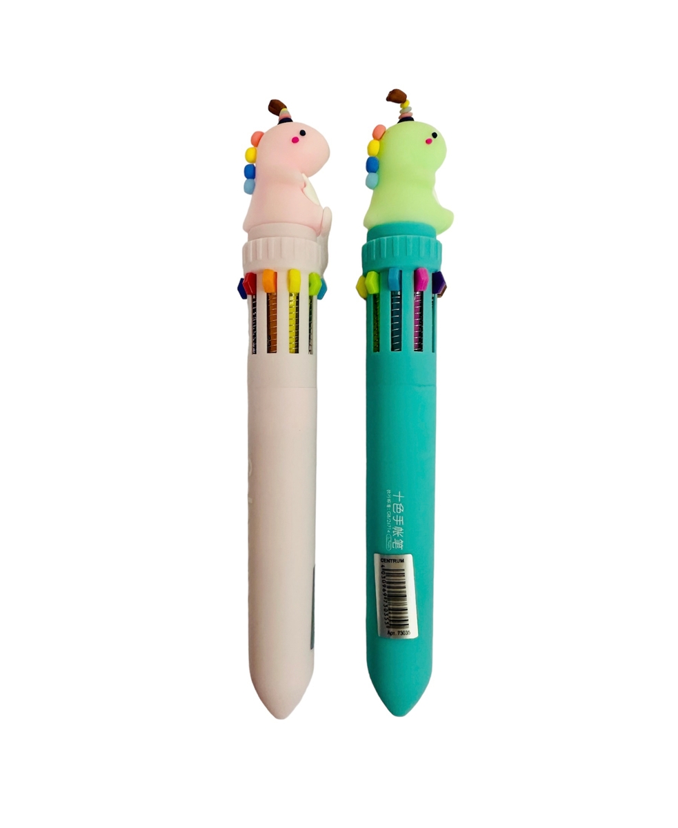 Centrum представляет многоцветные шариковые ручки в креативном исполнении. Круглый пластиковый корпус с бархатистым покрытием soft-touch дополнен резиновой фигуркой, не утяжеляющей инструмент. Автоматические модели удобны в использовании, экономят место в пенале или на рабочем столе, позволяют всегда иметь под рукой набор основных цветов для письма и выделения записей.