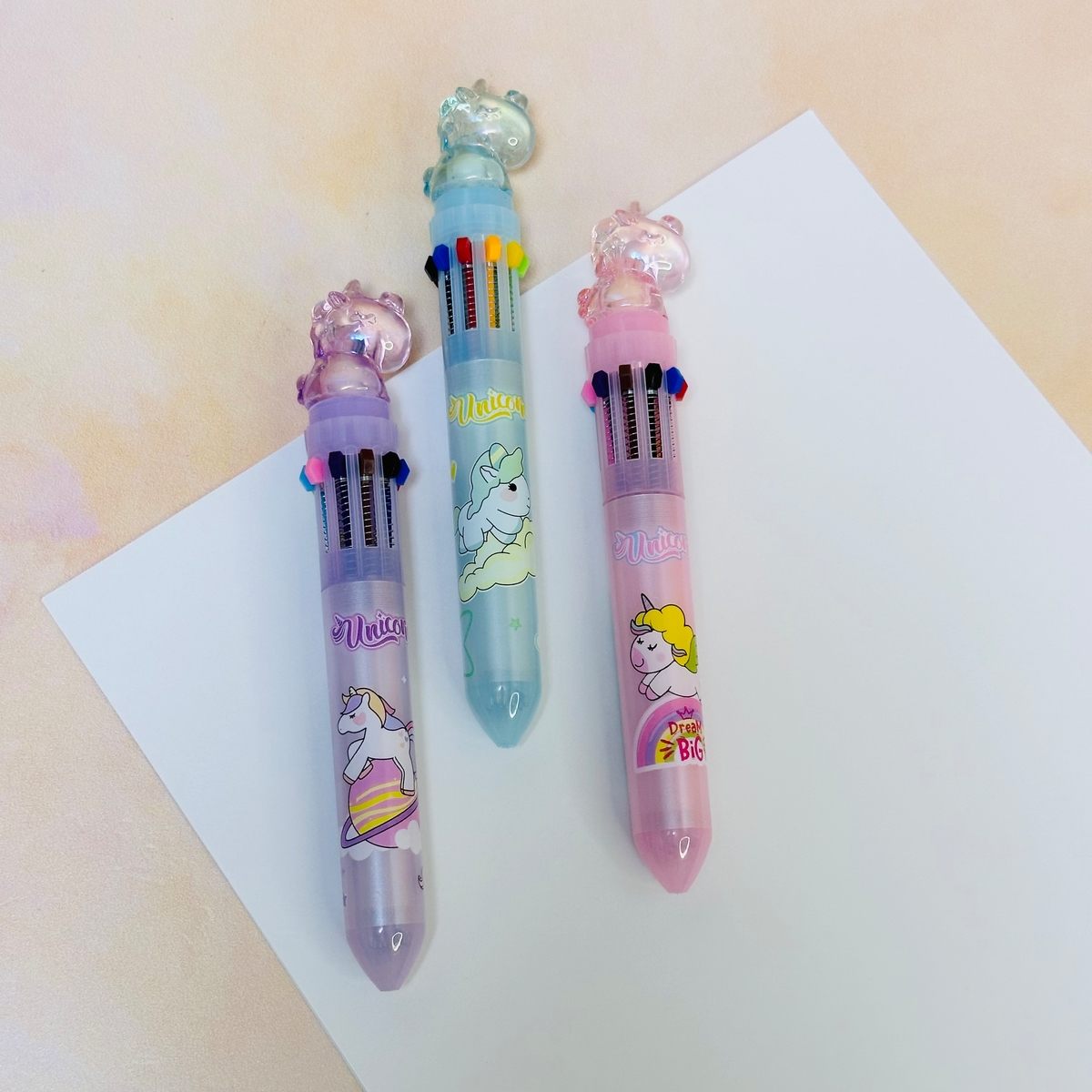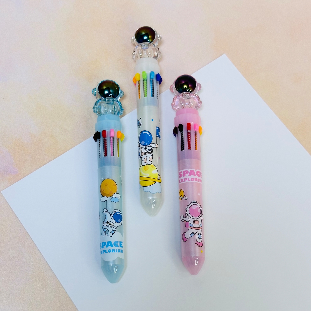 Модель содержит 10 цветов (чёрный, синий, красный, оранжевый, зелёный, голубой, фиолетовый, жёлтый, розовый, коричневый) с оптимальной толщиной пишущего узла 0,7 мм. Автоматический нажимной механизм обеспечивает плавную подачу необходимого стержня. Пластиковый корпус. Разноцветные чернила оптимальной консистенции равномерно распределяются при письме, мгновенно высыхая и не размазываясь.