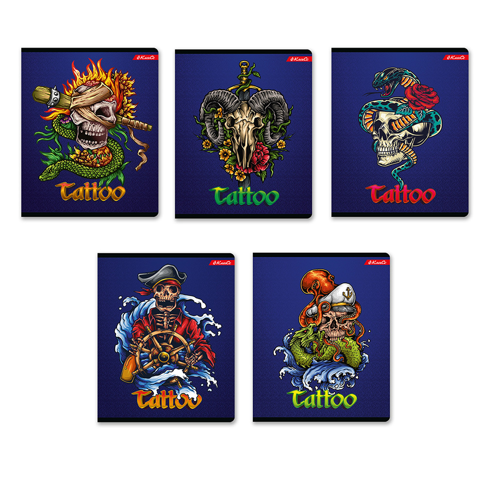 пиратов и рокеров? Да и да! Ярость и сила морей? Тысяча… да. Яркие, бунтарские тетради «Тату» с блеском твин-лака помогут выразить внутренний шторм. Главное, чтобы мама разрешила!