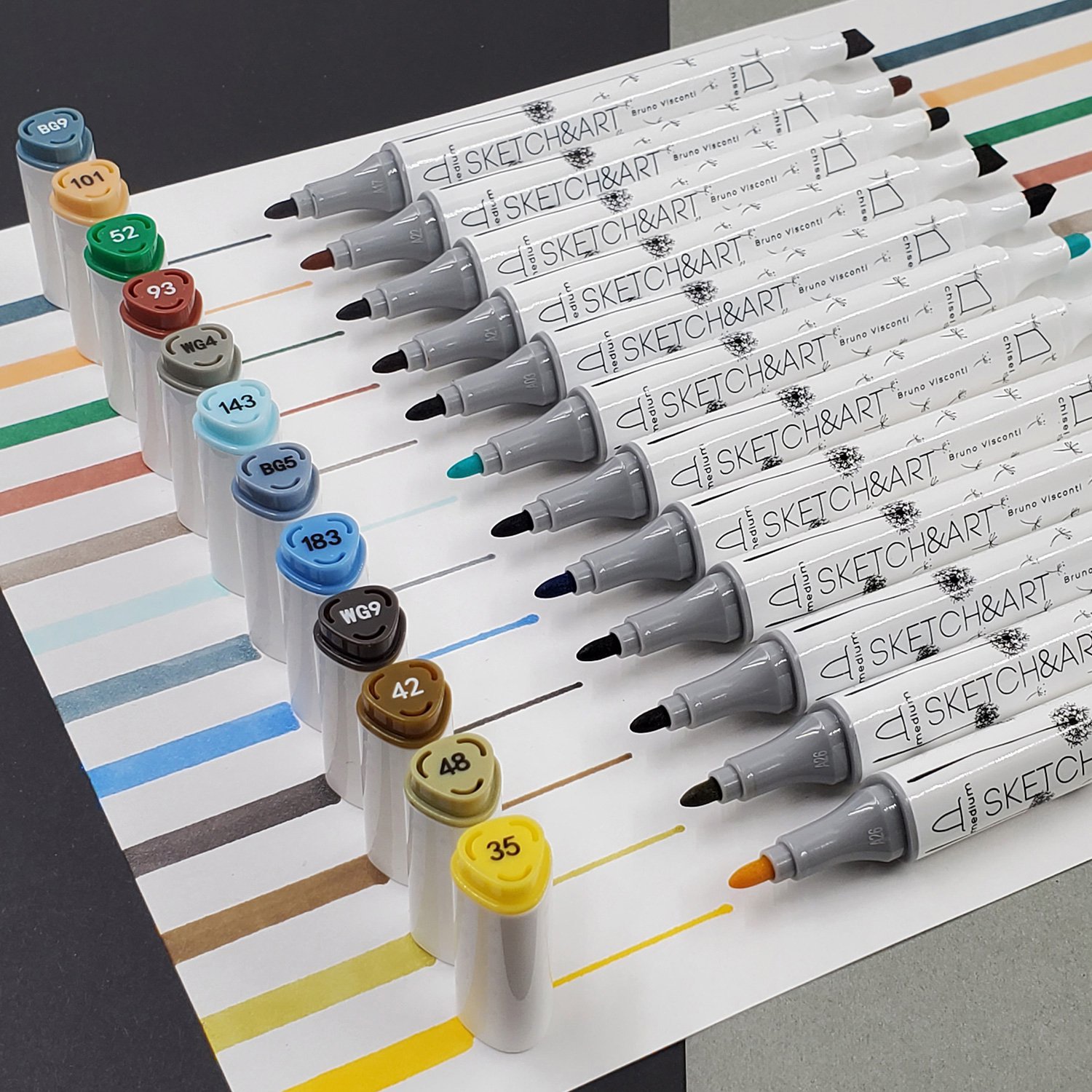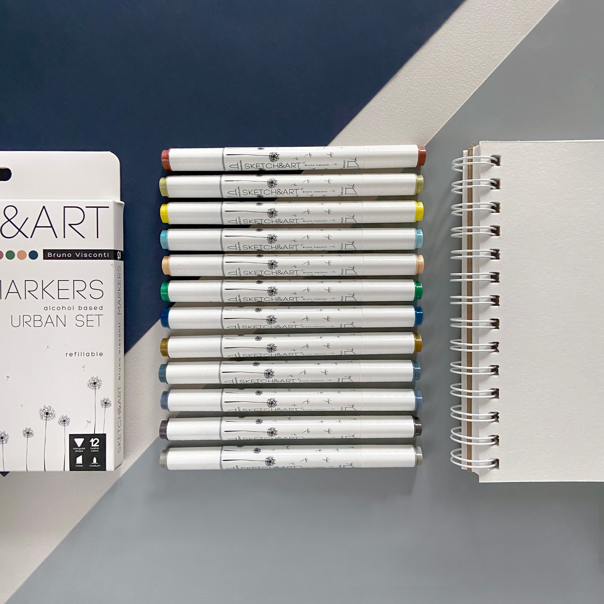 Высококачественные профессиональные маркеры Sketch&Art для рисования, набросков, дизайнерских работ. В наборе 12 цветов, специально подобранных под тему «Архитектура».