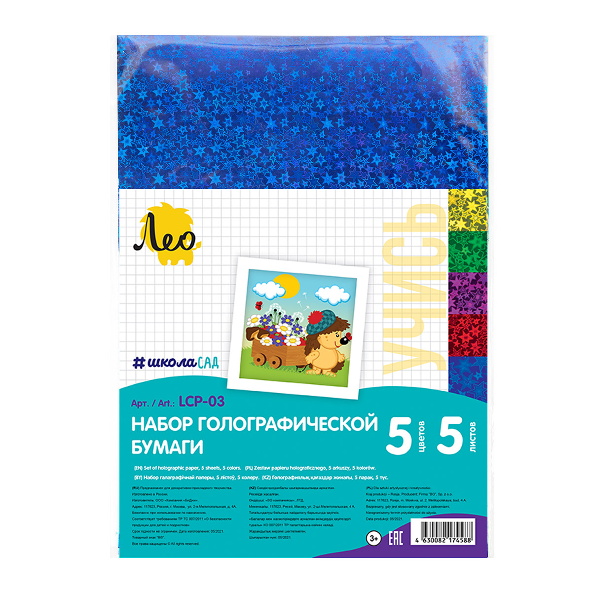 Набор цветной голографической бумаги ТМ «Лео» (арт. LCP-03) предназначен для детского творчества и моделирования. Праздничный дизайн бумаги также подойдёт для оформления открыток и подарков. Маленького любителя декора не оставят равнодушным яркие, блестящие цвета и глянцевая поверхность бумаги, с которой будет приятно и удобно работать.
