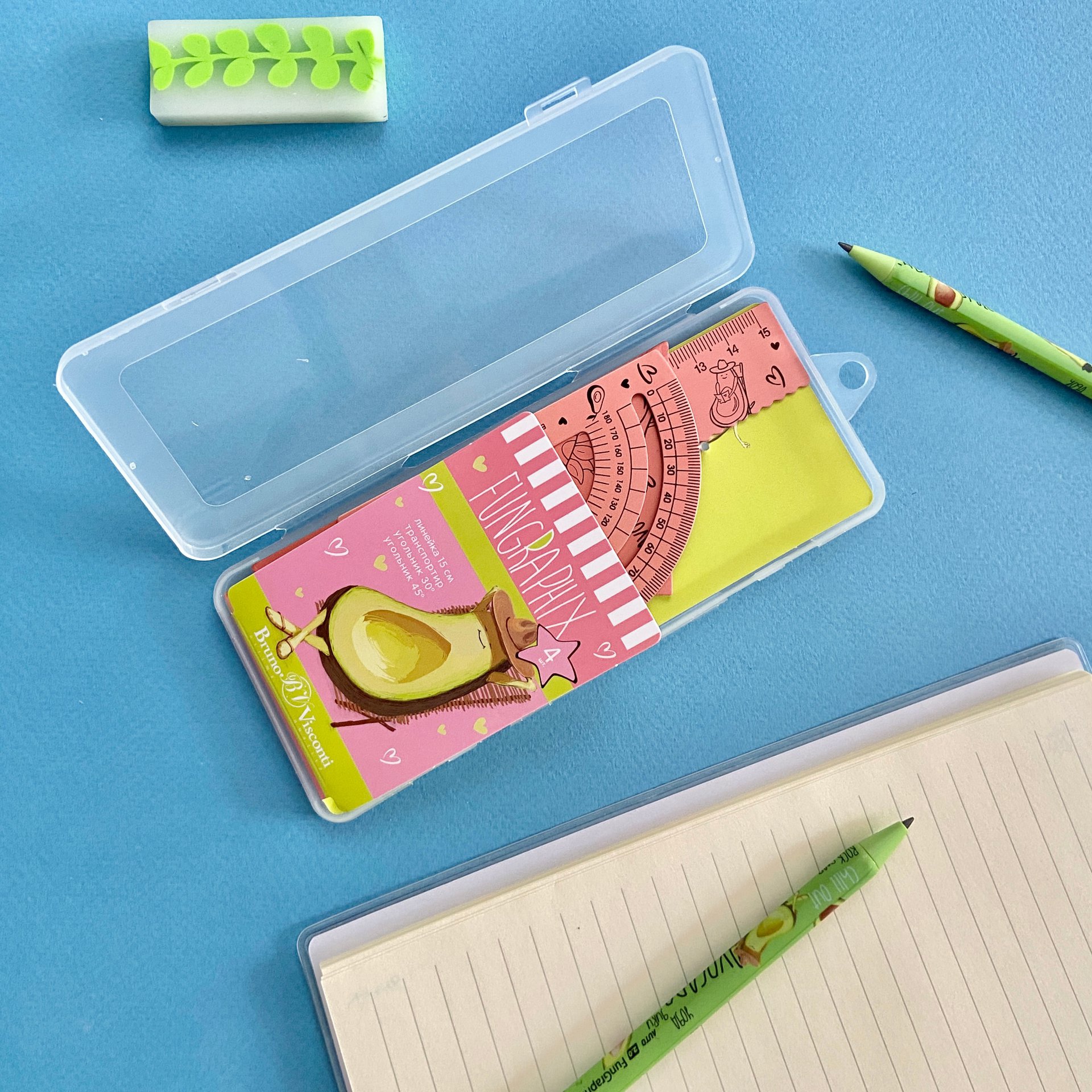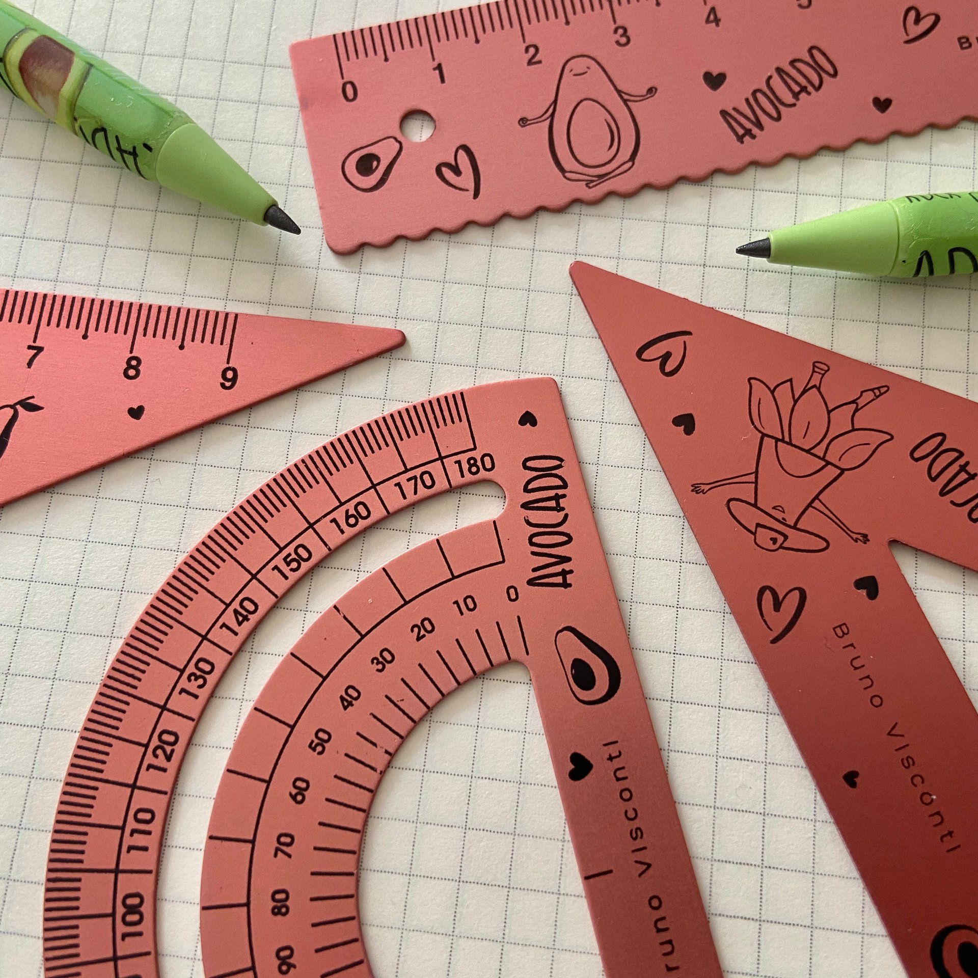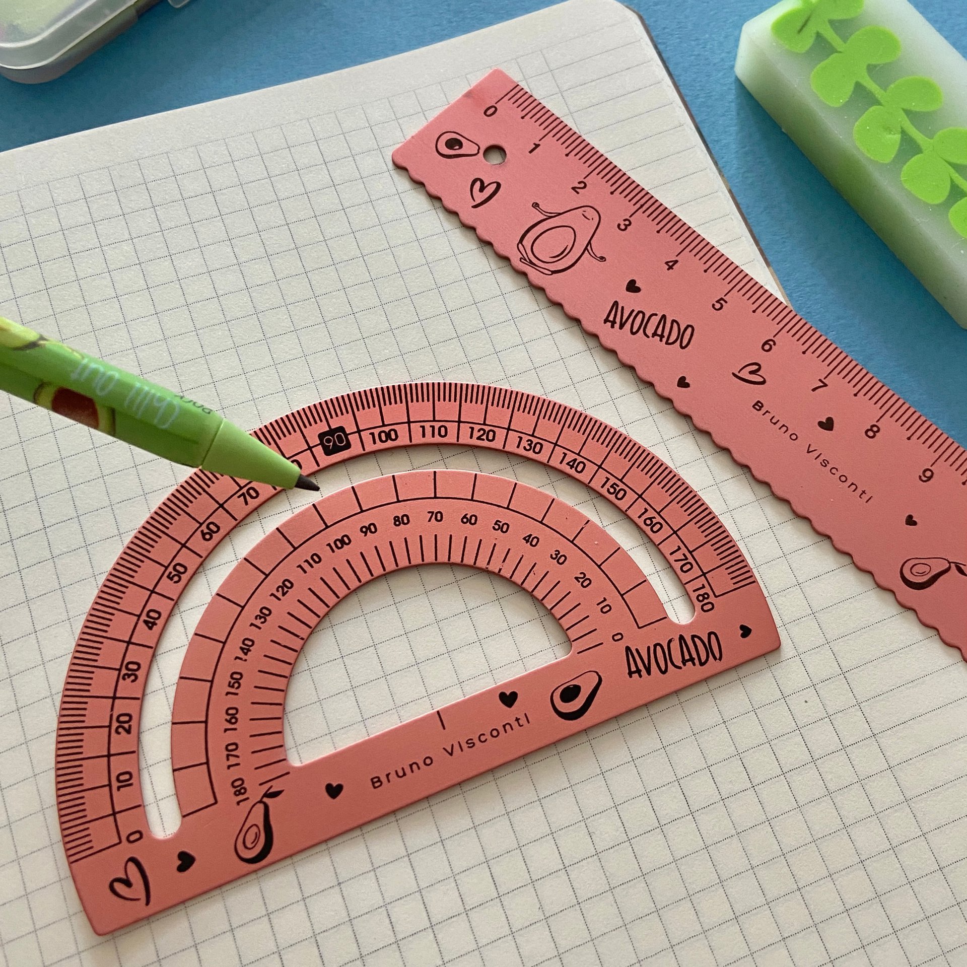 Такие забавные принты не могут не поднять настроение, их так и хочется изучать детально. Набор FunGraphix из четырёх металлических измерительных инструментов в пластиковом пенале: линейка 15 см, прямоугольный треугольник 30°/10 см, равнобедренный треугольник 45°/10 см, транспортир 180°. Предназначен для измерения расстояний, построения углов и черчения.