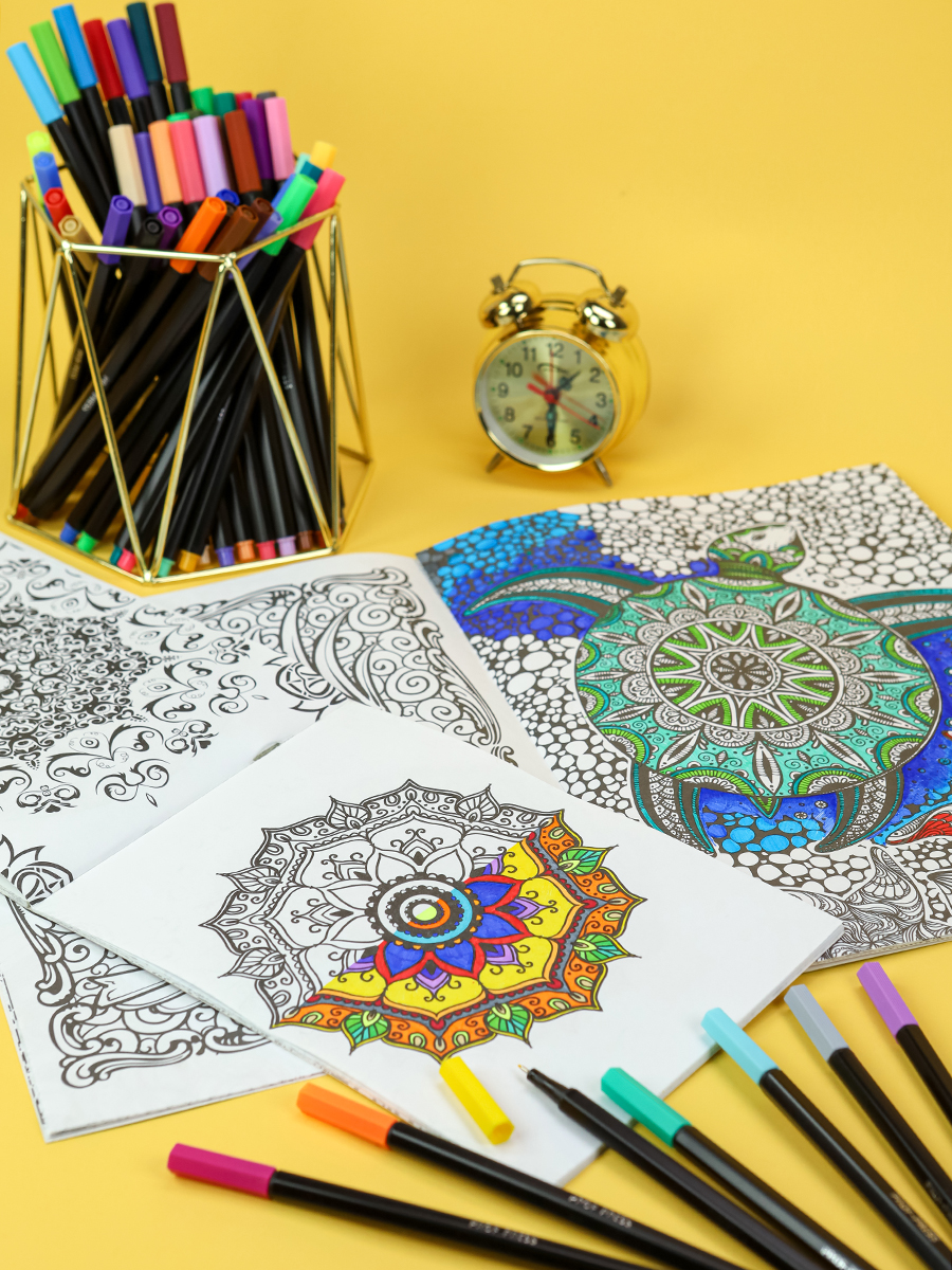 Антистресс-совет: вместе с капиллярными ручками рекомендуем раскраску-перевёртыш от PROF-PRESS, где половина иллюстраций выполнена на белом фоне, а другая — на чёрном. Начните с чёрных листов, благодаря чёрному фону вы сможете идеально раскрашивать, не выходя за границы рисунка.