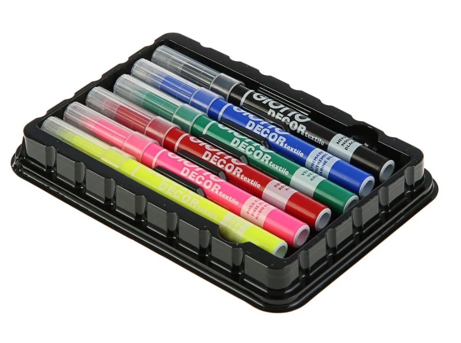 Картон, кожа, стекло, металл, пластик, ткань — маркеры для декорирования от Giotto украсят любую поверхность на раз-два. Заострённый фетровый наконечник в Giotto Decor Textille удобен для нанесения тонких линий или прокрашивания волокон ткани.