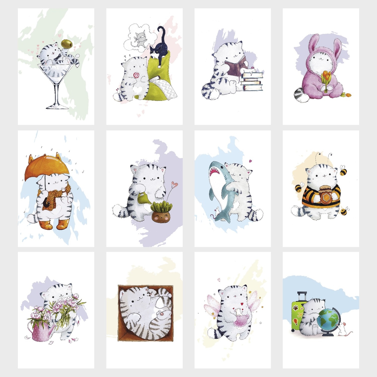 Какой самый быстрый способ освежить интерьер? Hatber знает ответ: набор мини-постеров «Приключения кота Пирожка». В 35 постерах (картон формата А6 плотностью 190 г/кв.м) атмосфера пушистой милоты, добра и уюта захватят сердечко. Забавные и деловые котики попадутся на глаза и поднимут настроение в любой день!