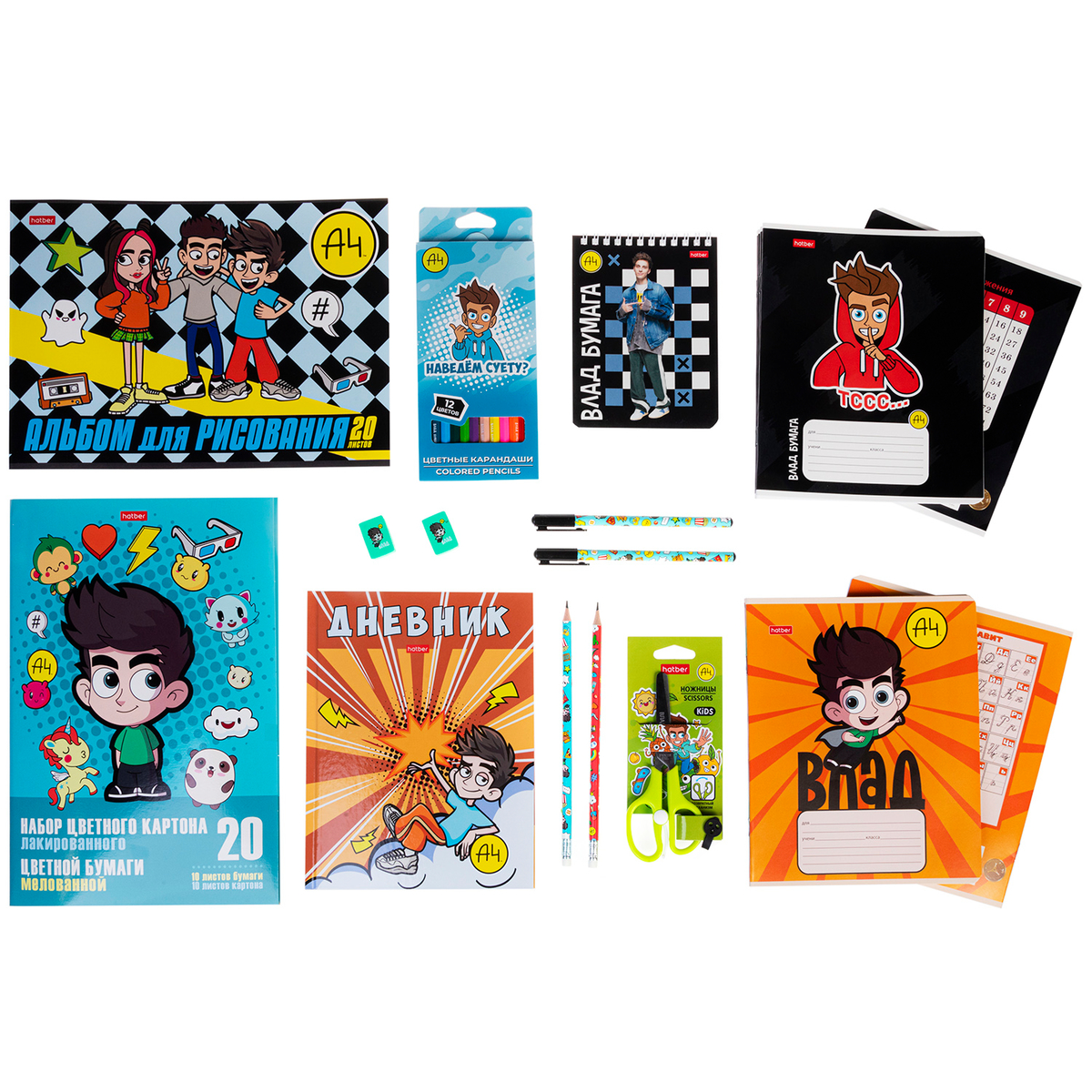 Предназначен для выпускников детского сада и учеников начальной школы. На подарочной коробке из ламинированного картона, а также на всех комплектующих набора изображён один из самых популярных блогеров в России и СНГ — кумир детей и подростков от 6 до 13 лет — Влад Бумага А4.