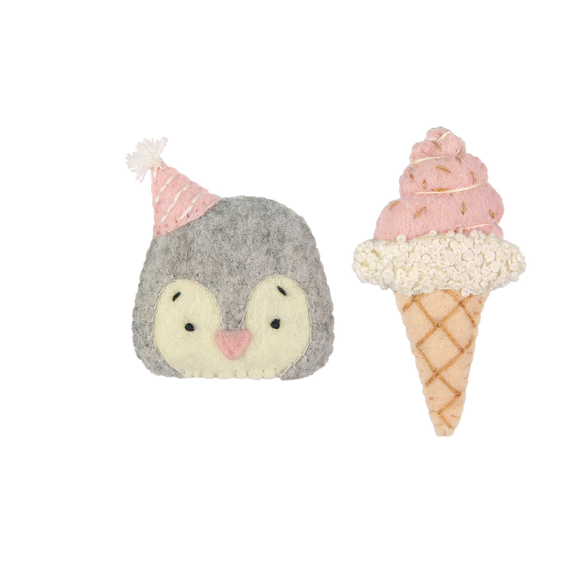 Комплект из двух очаровательных брошей в виде пингвина и мороженого украсит одежду или рюкзак. Изделия можно носить по отдельности или вместе, сочетать с другими брошами и аппликациями.