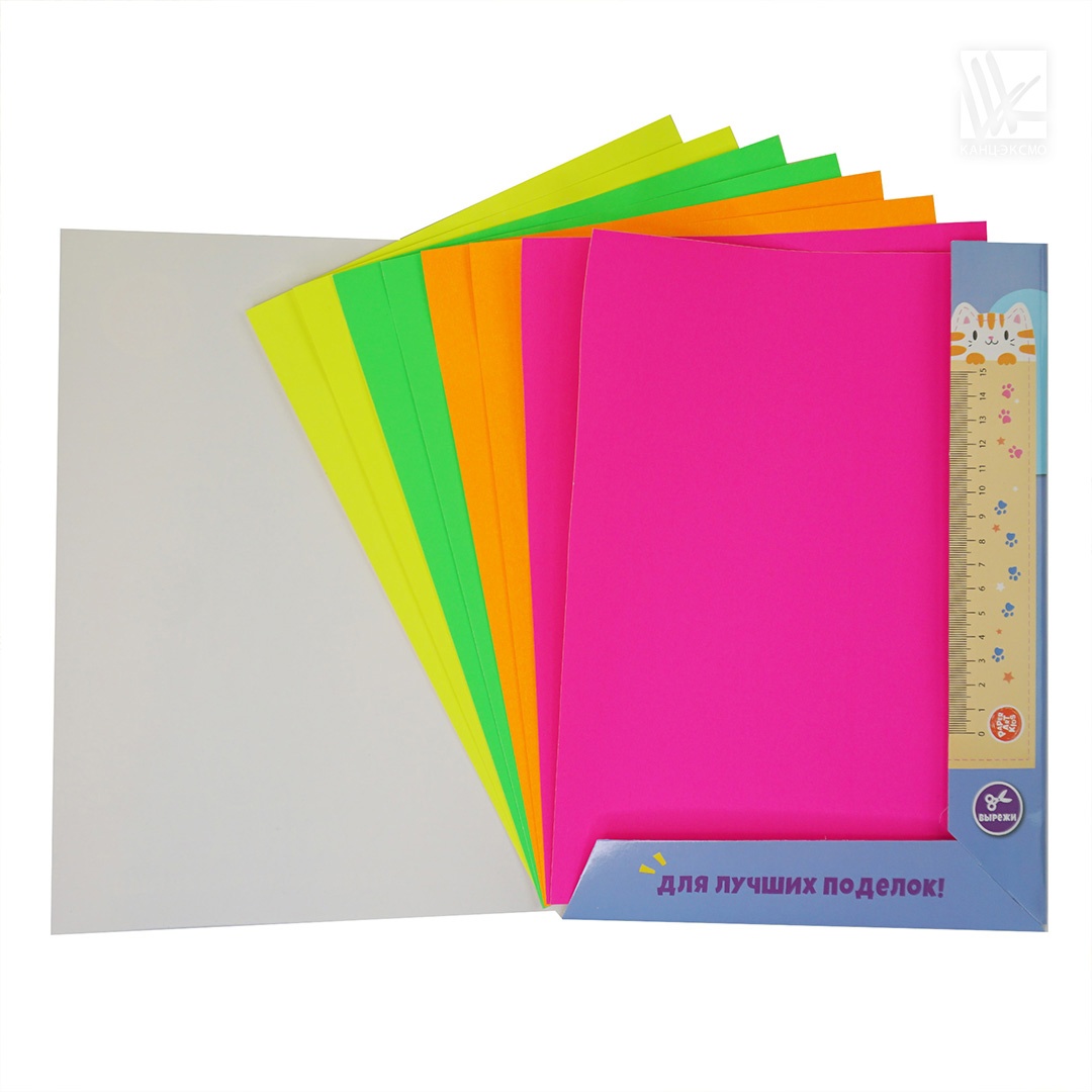 Набор цветной флуоресцентной самоклеящейся бумаги от «Эксмо» предназначен для творчества, хобби, моделирования. Флуоресцентная бумага имеет глянцевую поверхность и яркие неоновые цвета, которые помогут сделать оригинальной даже самую обыкновенную поделку.