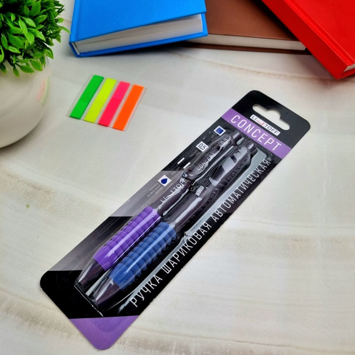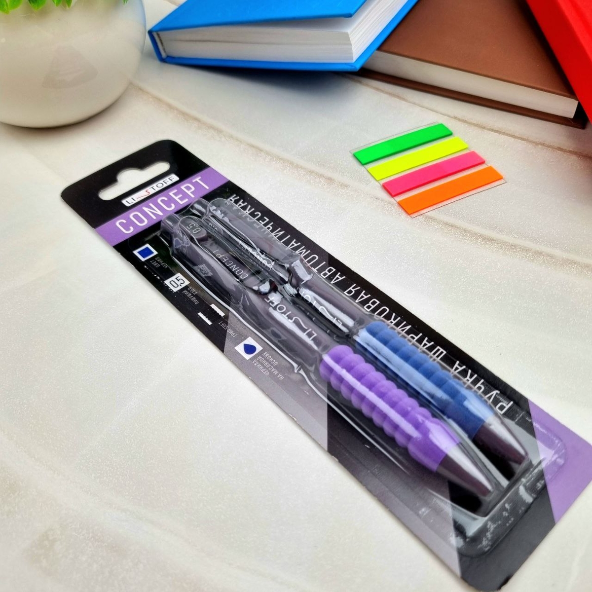 Автоматическая шариковая ручка Listoff 0,5 мм сделает ваше письмо максимально комфортным, благодаря своему круглому корпусу и мягкому грипу ручка удобно лежит в руке. Металлический клип-зажим на корпусе позволяет надёжно закрепить ручку прямо на блокноте или ежедневнике. А упаковка-блистер на две ручки гарантирует целостность набора.