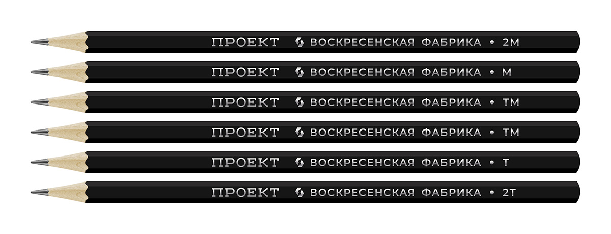 Воскресенская карандашная фабрика представляет набор из 6 графитных карандашей «Проект» (2B, B, HB, HB, H, 2H).