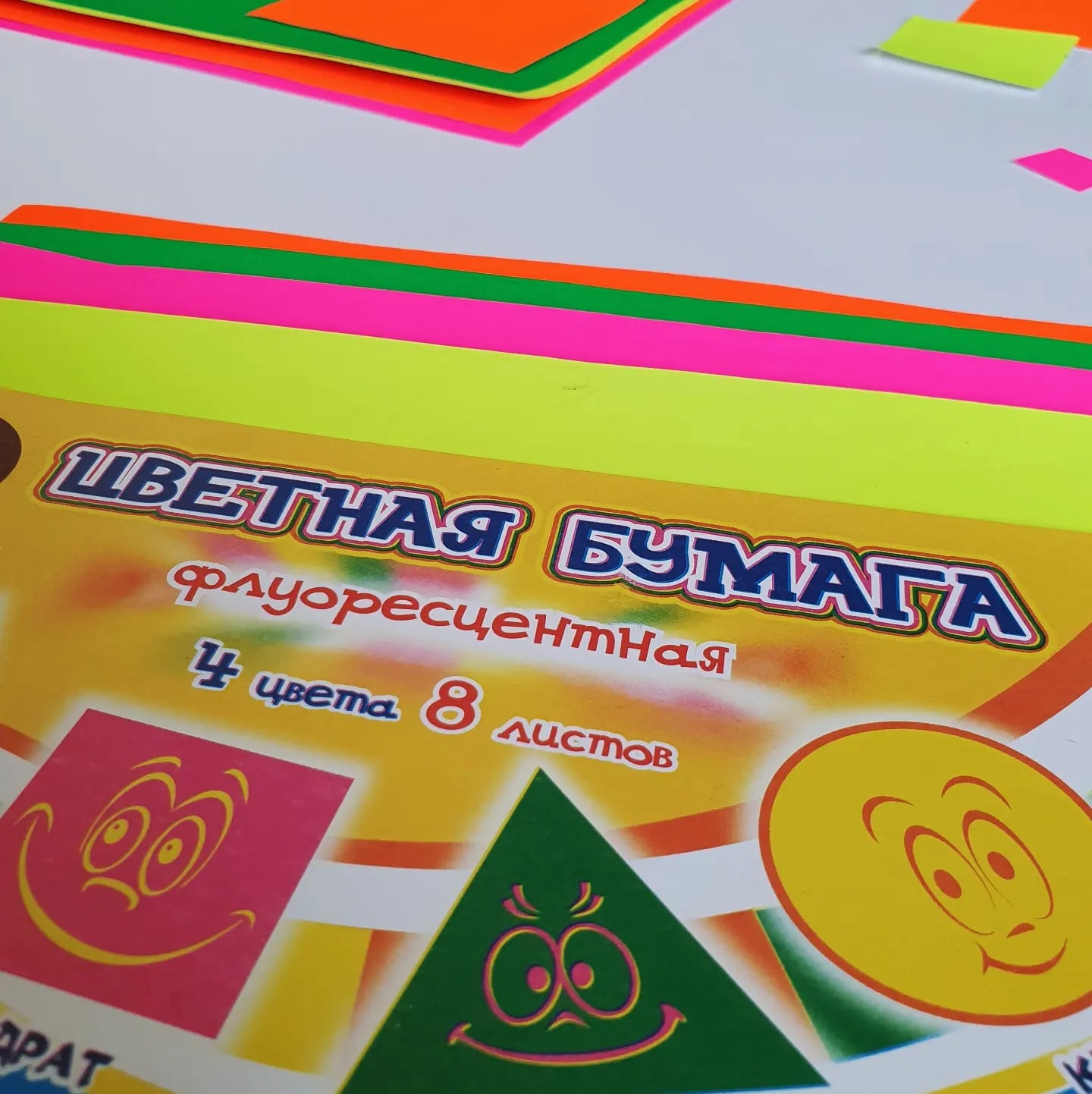 Цветная флуоресцентная бумага для творчества имеет формат А4, в наборе 4 сочных цвета (жёлтый, зелёный, оранжевый, розовый). Бумага двухсторонняя. Отличный вариант для создания ярких аппликаций и поделок, для занятий в детском саду, школе или дома.