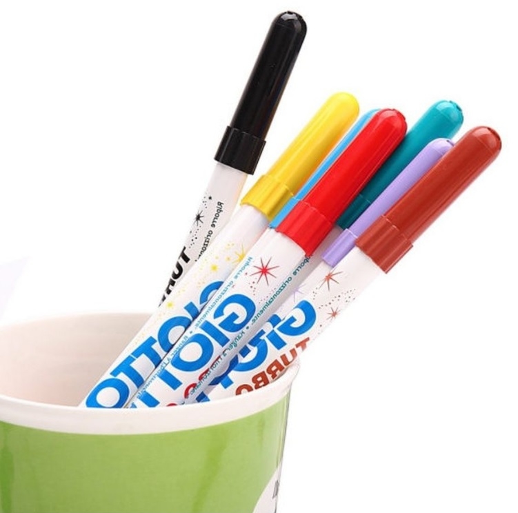Чернила фломастеров сделаны из натуральных красителей, а глиттер не осыпается при высыхании на поверхности листа.