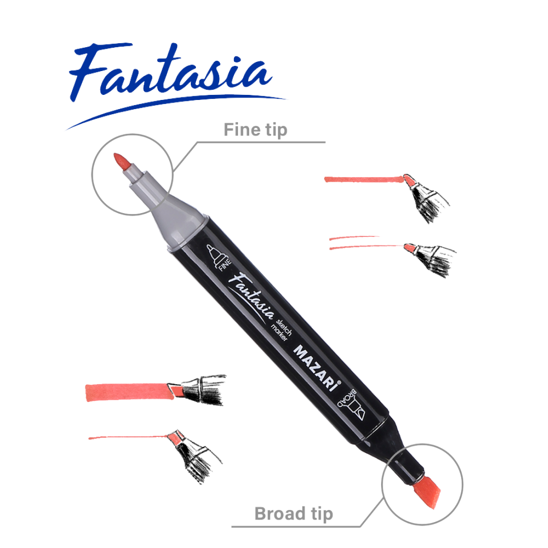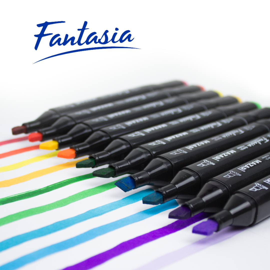 Двусторонние спиртовые маркеры Mazari отлично подойдут для новичков в маркерном скетчинге. Для рисования рекомендуется использовать скетчбуки For Markers ТМ Mazari или специальную бумагу для маркеров, гладкую и белую.