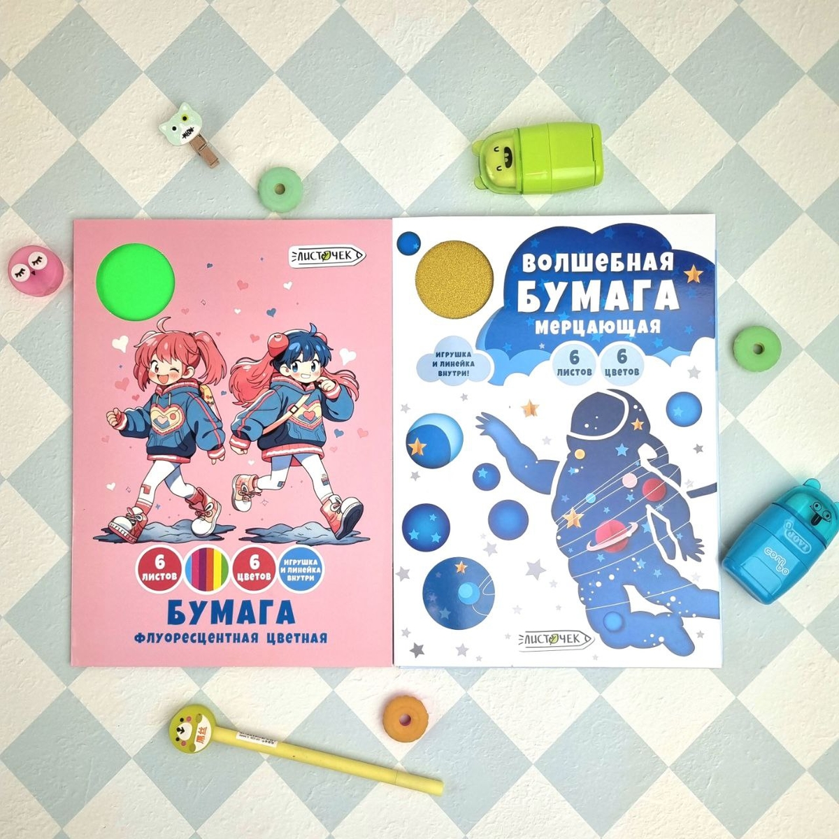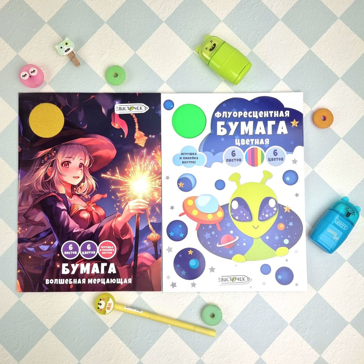 Творите ярче с нашими новыми наборами мерцающей бумаги! 6 листов, 6 потрясающих цветов — металлик и неоновые оттенки — для создания невероятных открыток, скрапбукинга, декора и любых творческих фантазий. Закажите сейчас и добавьте блеска в вашу жизнь!