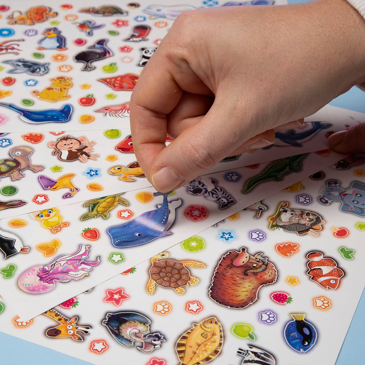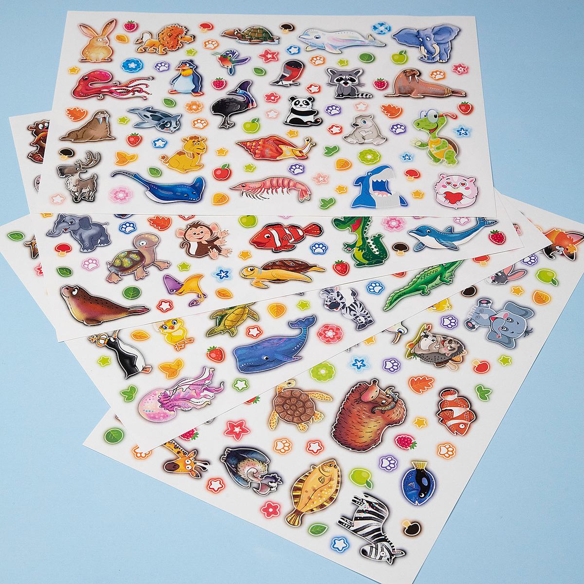 Сухопутные и морские зверята, рыбы и медузы, а также следы лапок, листочки, яркие и сочные фрукты и ягоды — для любителей удивительной фауны нашей планеты!