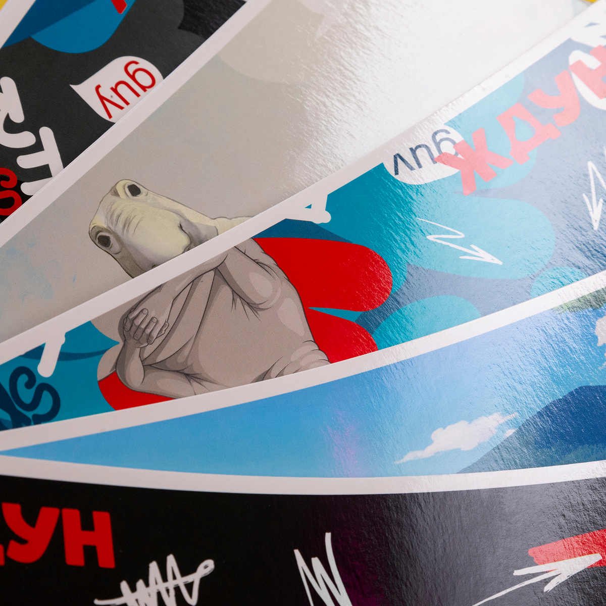 В дизайнах наблюдается приятное «ждунское» стилистическое разнообразие: двухмерные композиции с героем, трёхмерные живописные иллюстрации. Портреты на фоне умиротворяющих пейзажей, принты и картины более дерзкие и контрастные. Ждун — на любой вкус!