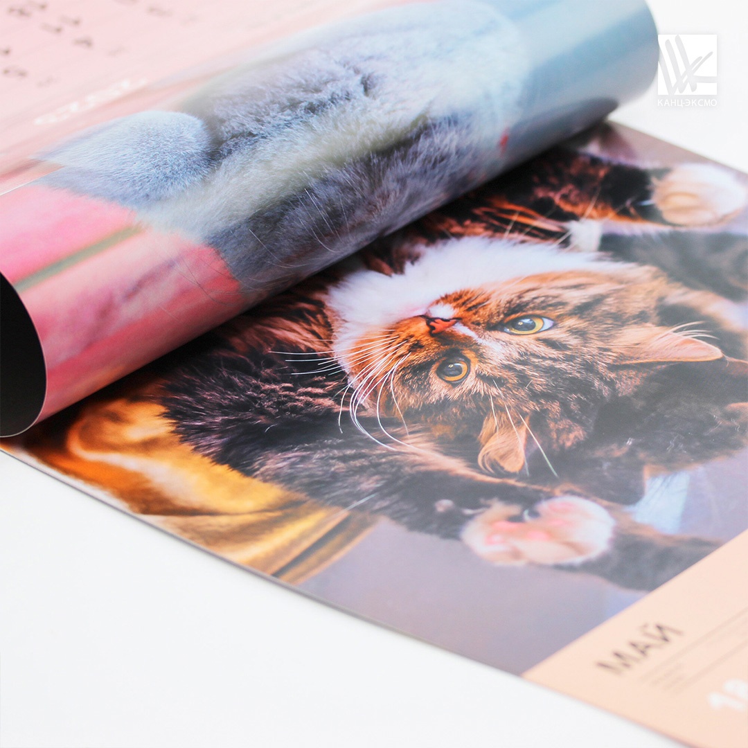Внутри календаря, на каждом развороте, милые кошечки, которыми можно любоваться бесконечно, испытывая не только удивление и восхищение, но и проникнутся к ним добротой и любовью.