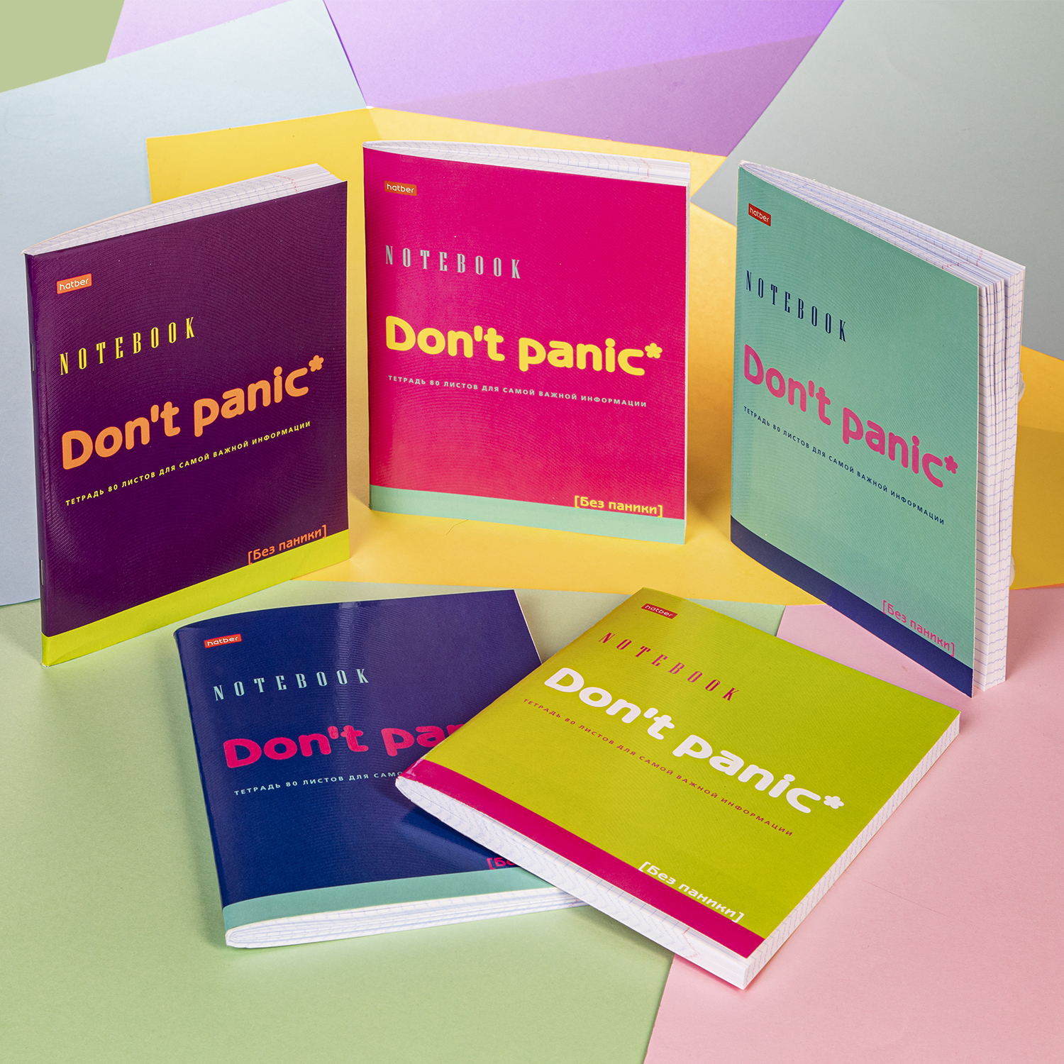 Наши две новые сериивсегда будут призывать вас к тому, что любую проблему можно решить, самое главное — DON’T PANIC. Именно так и называется первая серия наших тетрадей на 80 листов в клетку. Разноцветные, яркие обложки заряжают хорошим настроением, а выборочный лак подчеркивает надписи и делает нашу тетрадь ещё более привлекательной, ее приятно держать в руках.