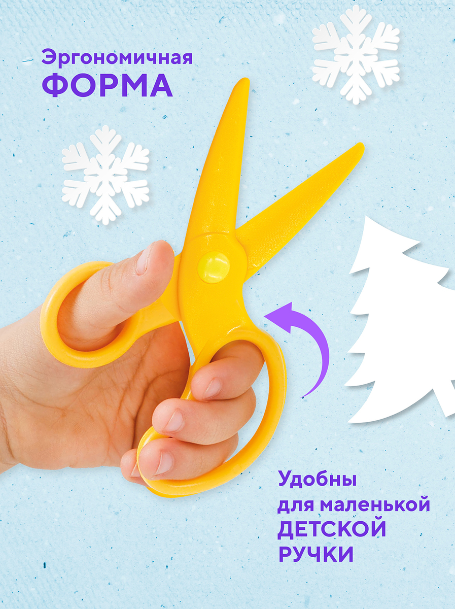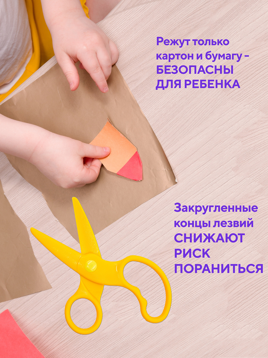 Безопасные детские ножницы созданы специально для маленьких ручек, помогая легко освоить первые навыки вырезания. Удобная форма и закруглённые тупоконечные лезвия снижают риск пораниться в процессе создания своих первых шедевров. Безопасные лезвия режут только картон и бумагу. Эргономичные пластиковые ручки разработаны специально для малышей — они удобно ложатся в руку, не скользят, а также минимизируют усталость при длительном использовании. Познакомьте малыша с миром творчества безопасно и весело!