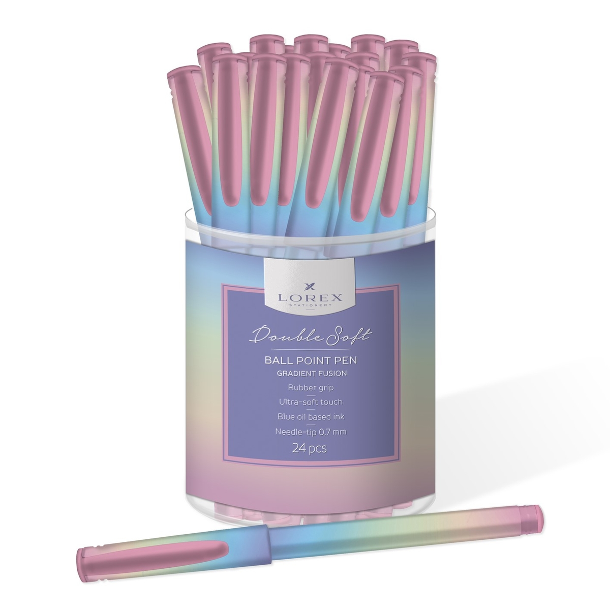 Ручка маслян. LOREX GRADIENT FUSION Double Soft синий 0,7 мм дизайн кругл. корп. ultra-soft touch грип игольчатый наконечник
