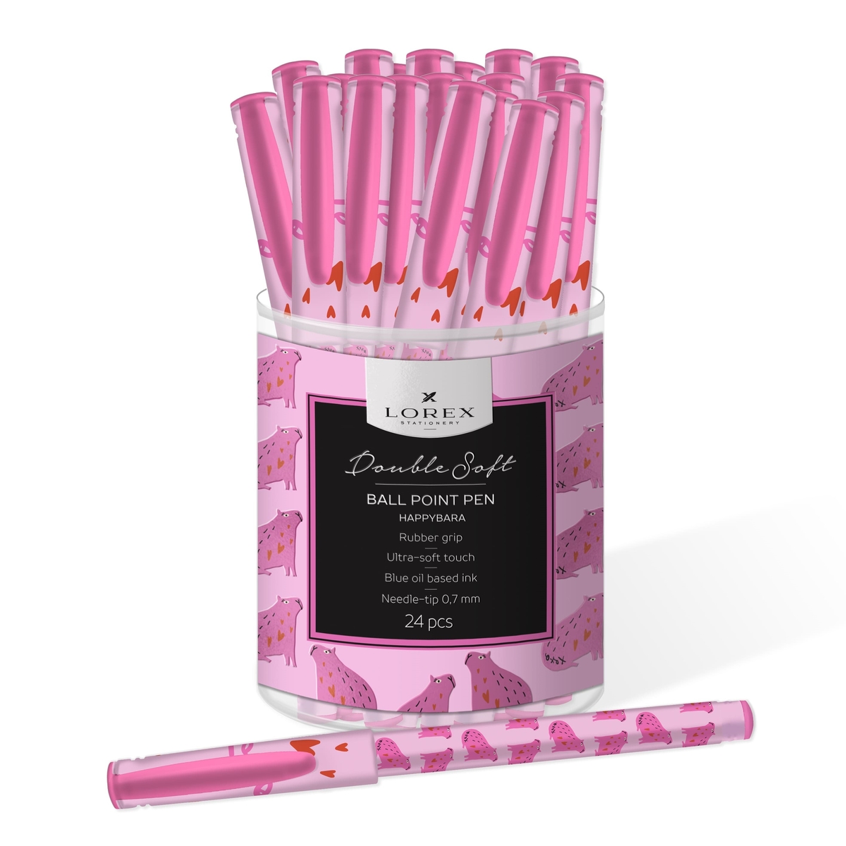 Ручка маслян. LOREX HAPPYBARA Double Soft синий 0,7 мм дизайн кругл. корп. ultra-soft touch грип игольчатый наконечник